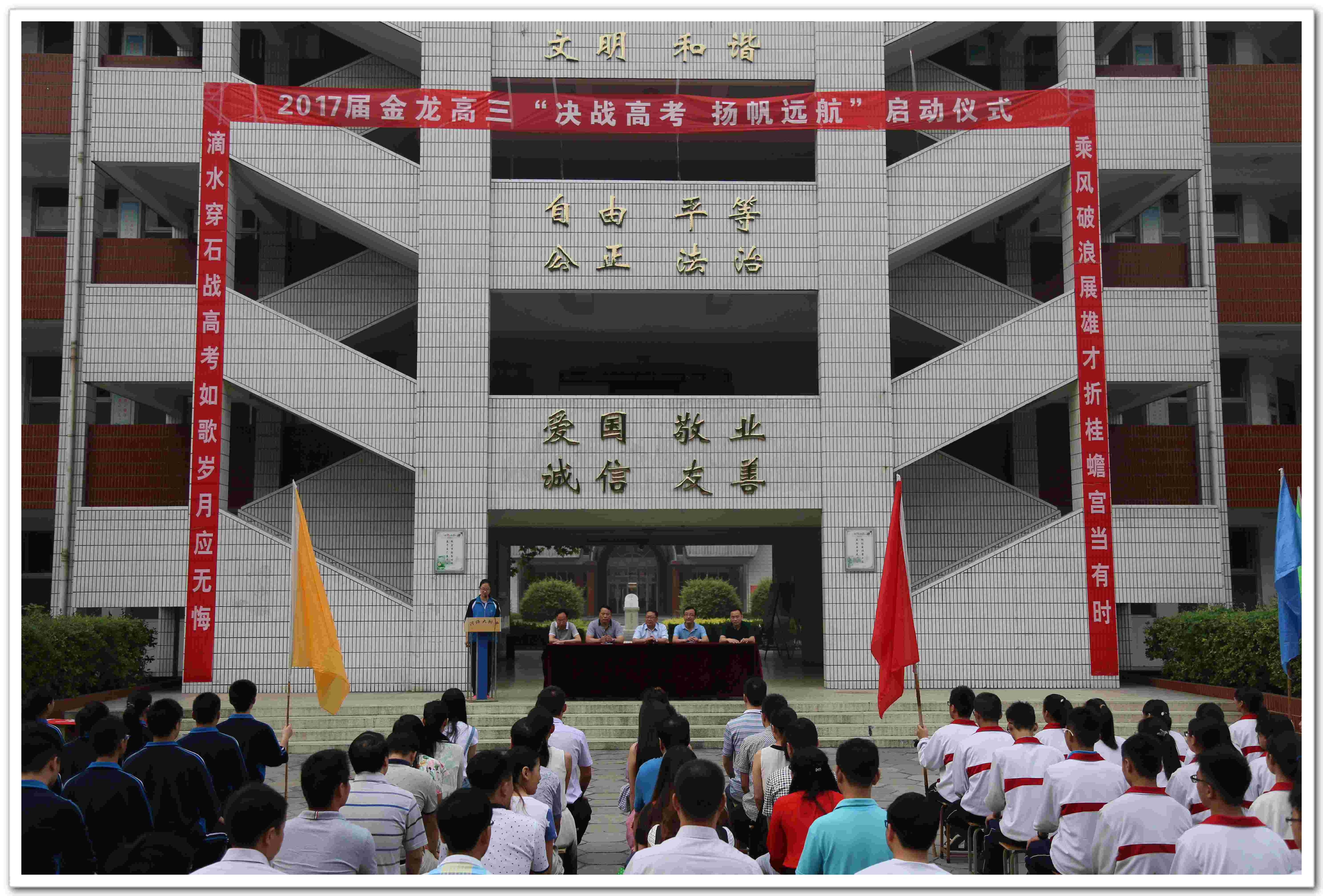 十年寒窗丰羽翼,今朝搏击翱长空,7月4日早上7点,2017届金龙高三“决战高考 扬帆远航”启动仪式在校中心广场隆重召开,校长刘黎,副校长赵振华,教育教学部主任刘新选,副主任郭卫强等领导莅临见证。启动仪式在庄严的升旗仪式中拉开序幕。