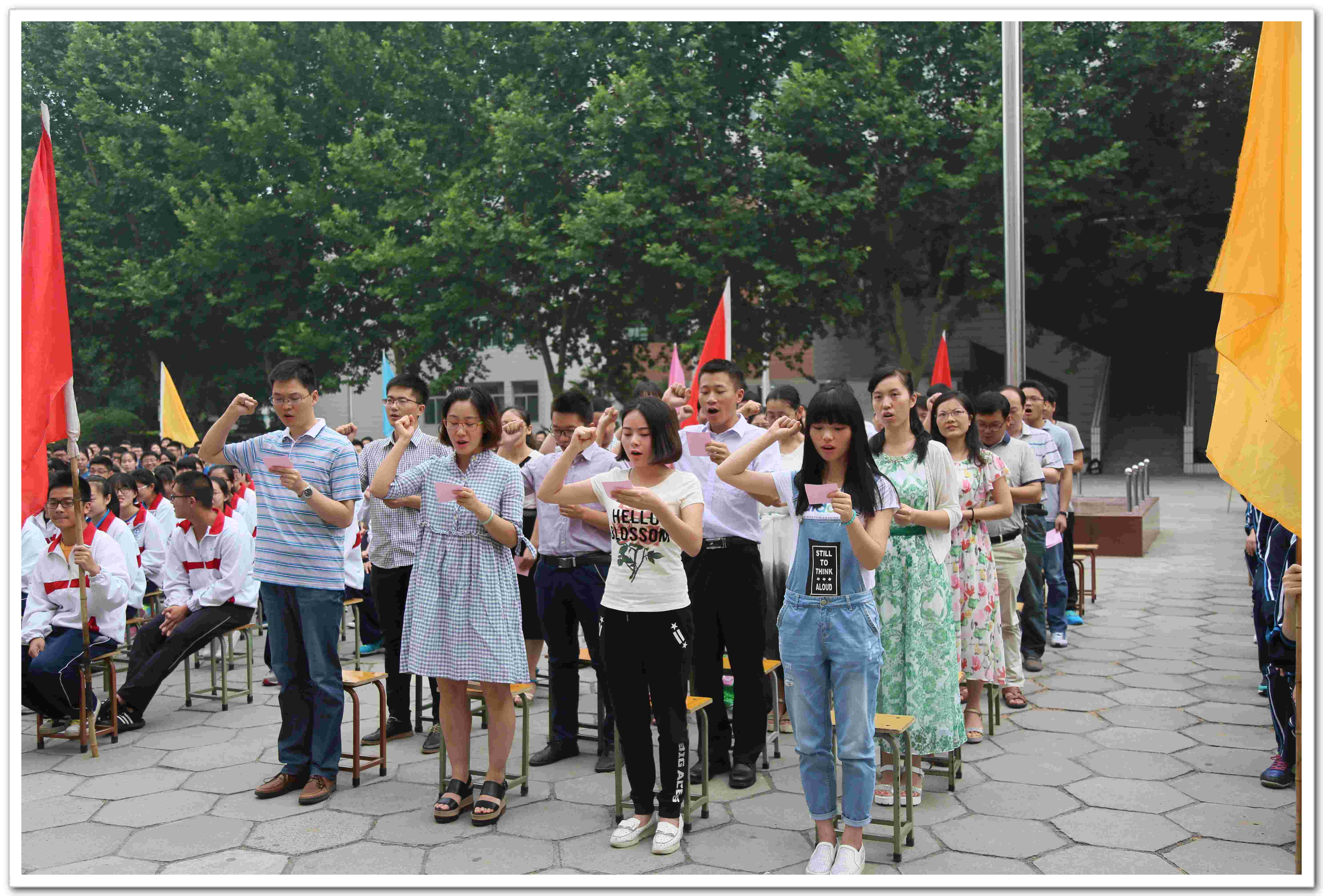 最激动人心的宣誓环节到了,首先是由全体教师宣誓,年级主任赵东亚领誓。“拼搏高三,我们定会倾尽全力;决战高三,附中定将再铸辉煌!”教师们的铮铮誓言为金龙高三全体同学注入一针强心剂。接下来高三各班依次喊出自己口号,“风起云涌,出水蛟龙”“不苦不累,高三无味”同学们用响彻云霄,振聋发聩的口号向新高三宣战!最后全体同学紧握右拳,表情凝重地高声喊出年级誓词:争分夺秒,百炼成钢,全力以赴,铸我辉煌!