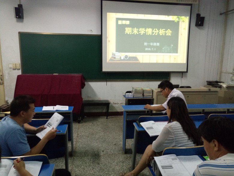 7月1日下午,期末考试学情分析会在知雅楼一楼音乐教室召开。年级主任刘敏灵从年级整体综合的横纵向对比和班级教育教学团队的横纵向对比对本次期末考试进行了详细的分析,指出了一年来在年级老师的共同努力下所取得的成绩:常规工作井然有序、学业成绩遥遥领先、学生自主能力不断提高。同时,刘主任还对下一学年的工作提出了设想:常规管理工作不放松,继续抓严抓实抓细;进一步开展特色系列建设和家校合作建设。班主任代表陈文甫老师和学科团队代表郭金仙老师分别发言,对取得成功的经验进行了分享交流。学部副主任张自发莅临分析会,对老师的辛勤付出表示感谢,对初一年级取得的成绩表示肯定,并在学情分析会的分析方法上给予了具体的指导。