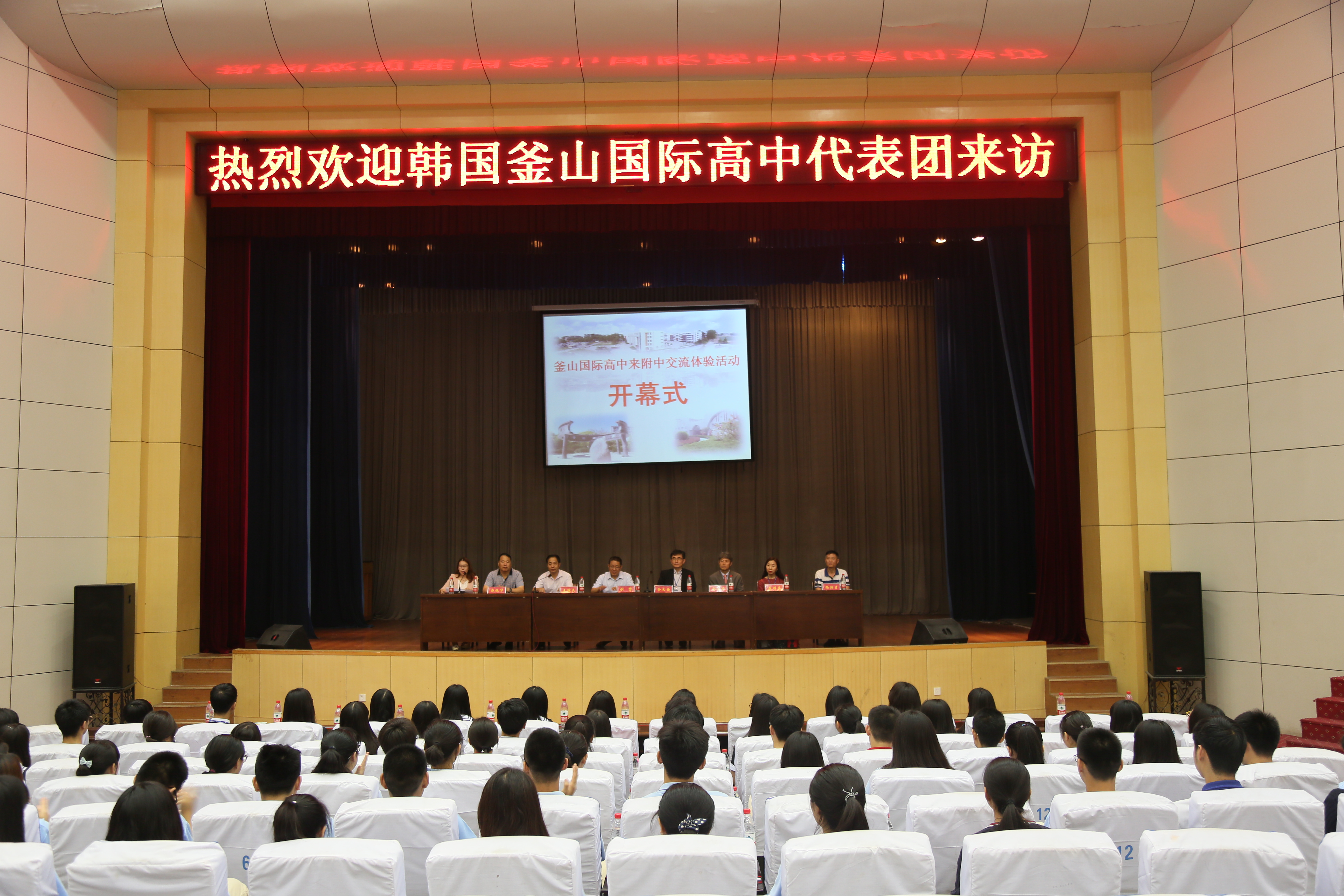 7月11日上午,韩国釜山国际高中代表团金大焕团长等三位老师以及28位韩国学生到我校交流访问。校长刘黎、副校长王继民、赵振华、杨相臣以及高中部、国际部的领导和学生代表