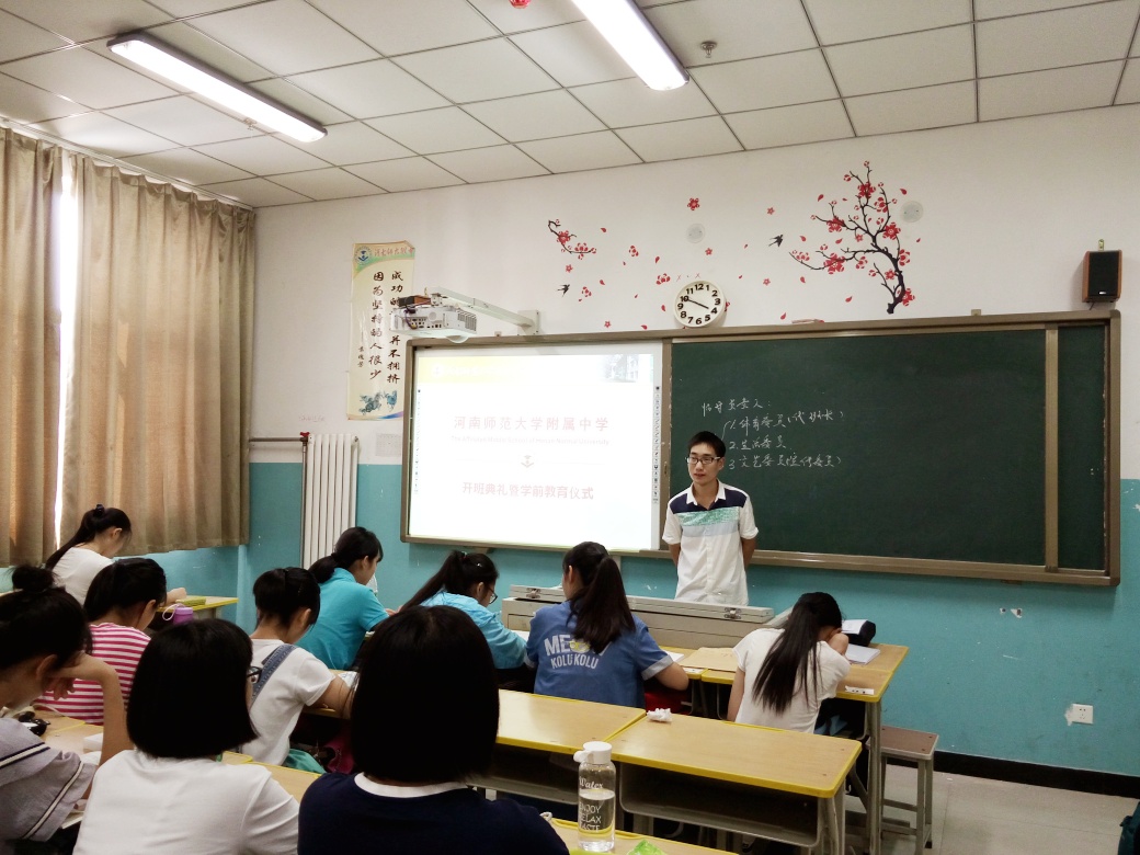 为做好新生报到及入学教育工作,副校长王继民,高中教育教学部主任侯伟、副主任张自发、刘毅,高一年级19位级班主任及全体教师都做了细致而精心的准备,如:教学楼标语张贴、卫生打扫,教室桌椅摆放、空调门窗检查、照明及多媒体设备检查等,这一系列工作的有序完成为31日的入学教育工作营造了一个积极进取的氛围。
