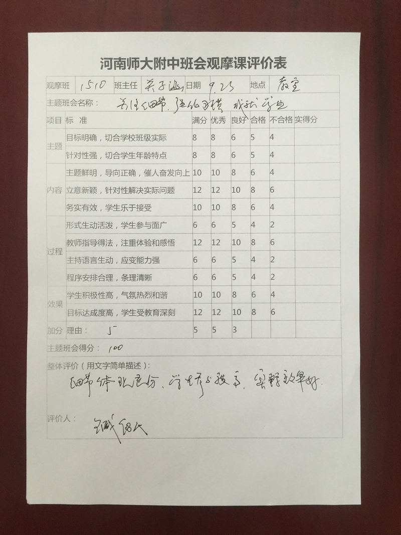 ——河师大附中高中部高二1510班班会观摩课成功举行