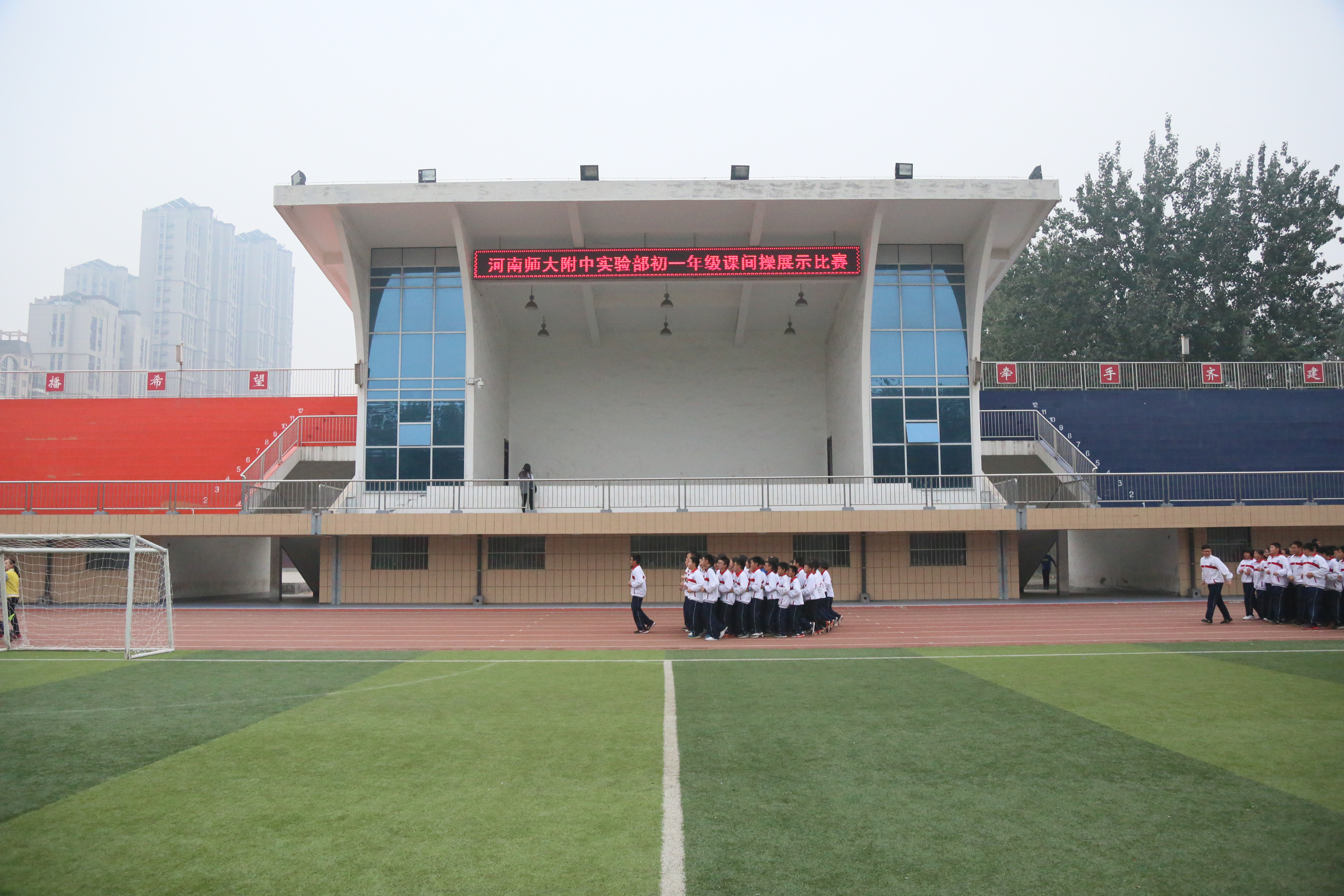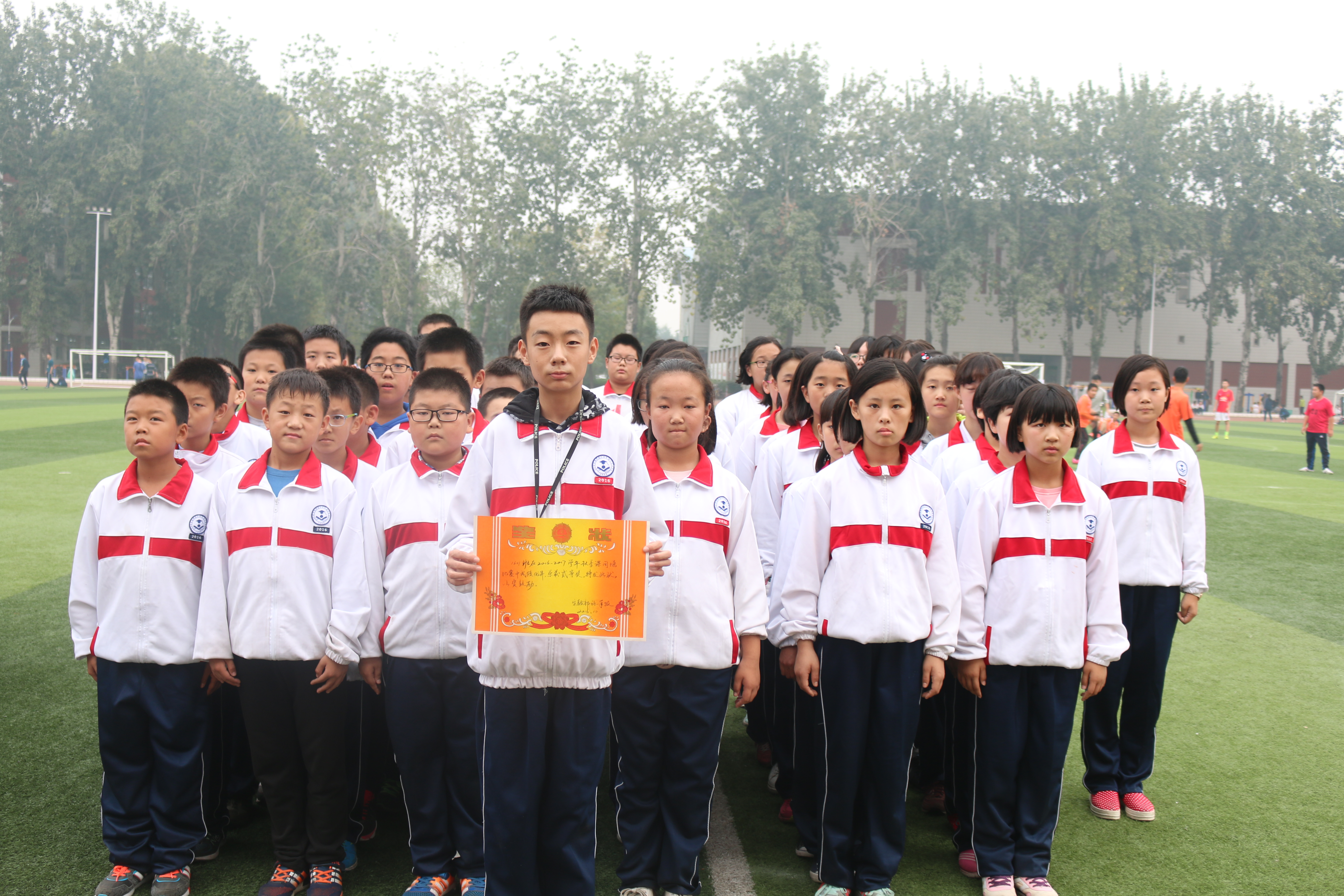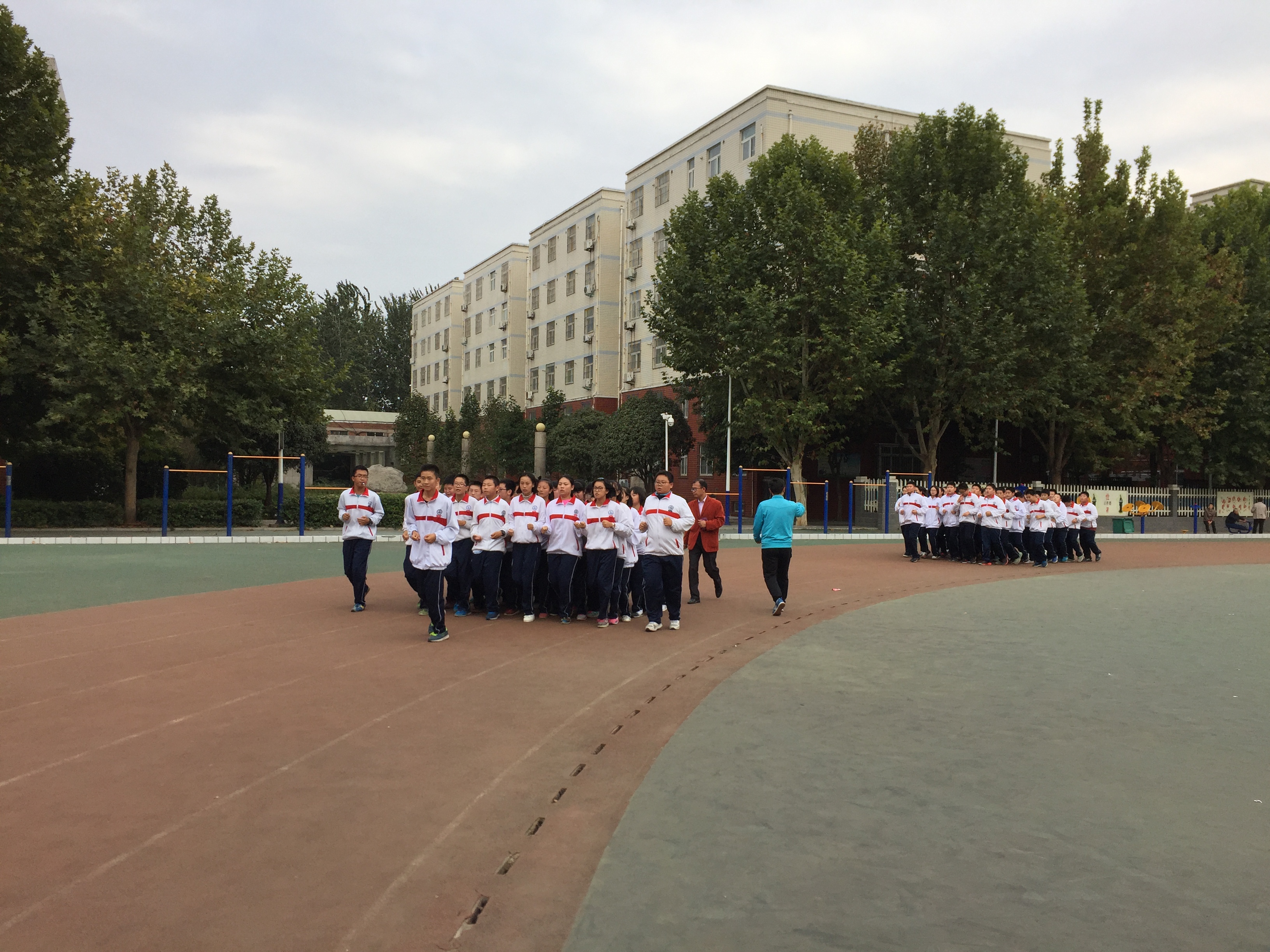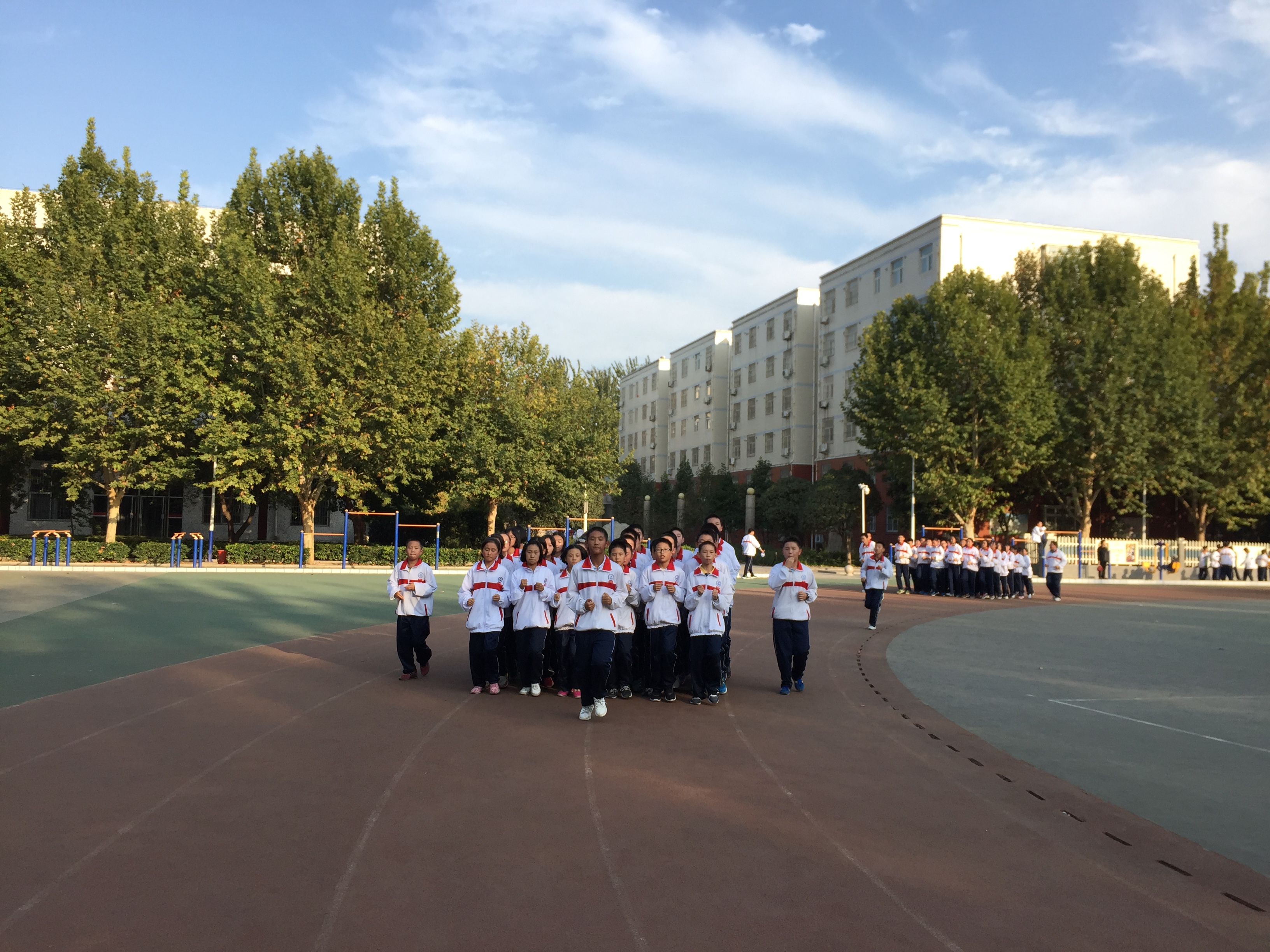 课间操最能体现一个班级的团结协作能力,同时也是展示一个优秀班集体班风班貌的团队活动。军训结束后,年级每天利用下午第三节课的时间加强课间操训练,并适时开展课间操评比活动,取得良好效果。
