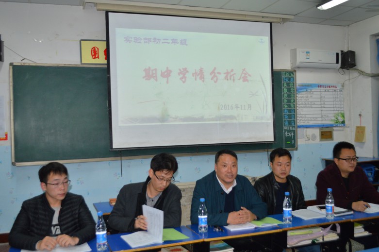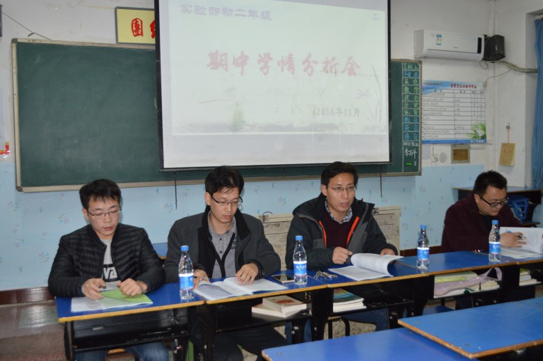 11月11日晚上,实验部初二年级在初1501班召开期中考试学情分析会,副校长赵振华,实验部主任汪才安、副主任赵东亚莅临分析会,实验部初二年级全体老师共同参加。