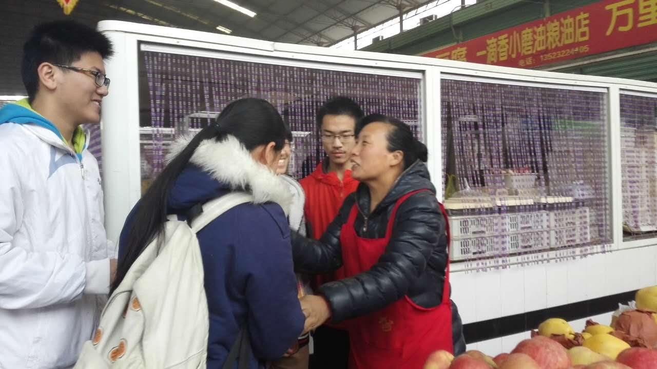 11月13日上午在附中国际部高二欧美家长委员会的组织下,国际部欧美班学生志愿者们跟家长志愿者一起去新乡市北环菜市场和牌坊花园菜市场进行爱心募捐活动,然后大家带着募捐的东西去好佳养老院看望老人,陪老人谈心、整理内务。