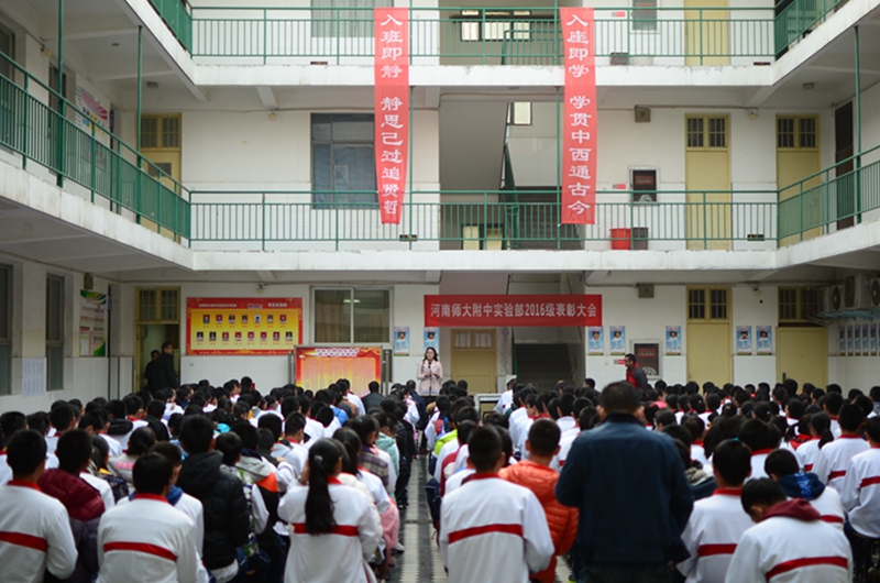 为了表彰先进,激励全体师生,营造热烈、和谐、向上的校园氛围,通过表彰,对学习成绩进步突出的学生予以鼓励与肯定。11月14日下午4:30,实验部高一年级在启智楼天井院内举行了期中考试表彰大会。河南师大附中副校长赵振华,实验部高一年级级主任任志福、副主任张鹏及实验部高一年级全体师生参加了此次大会。