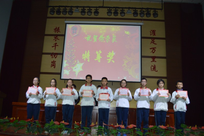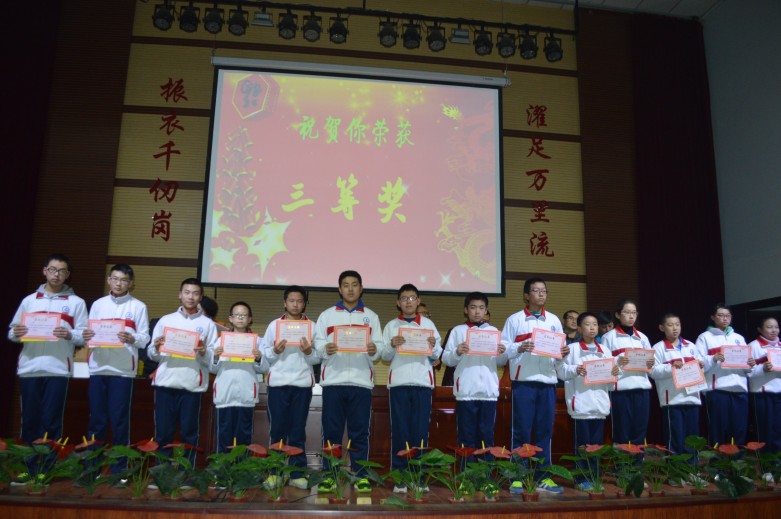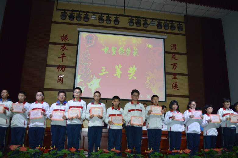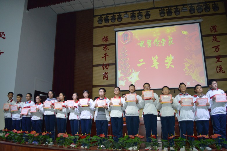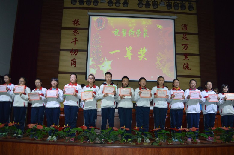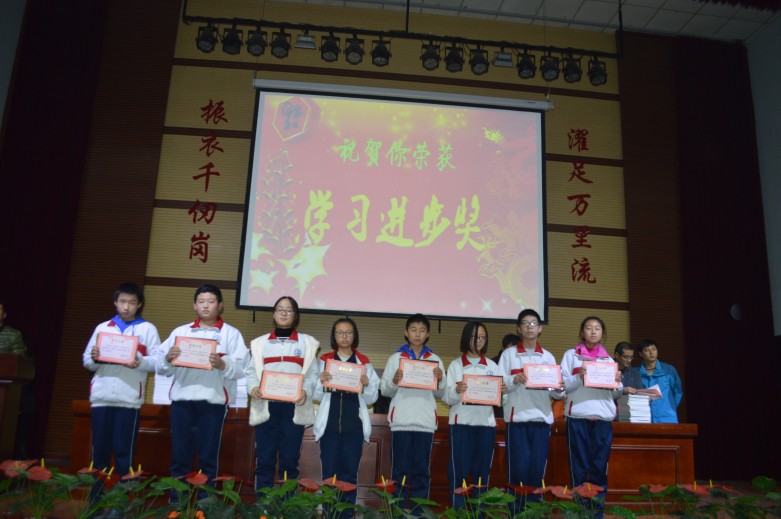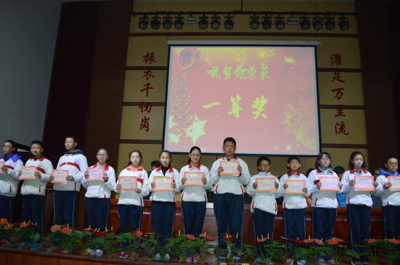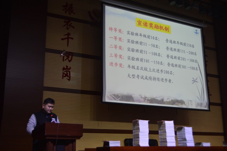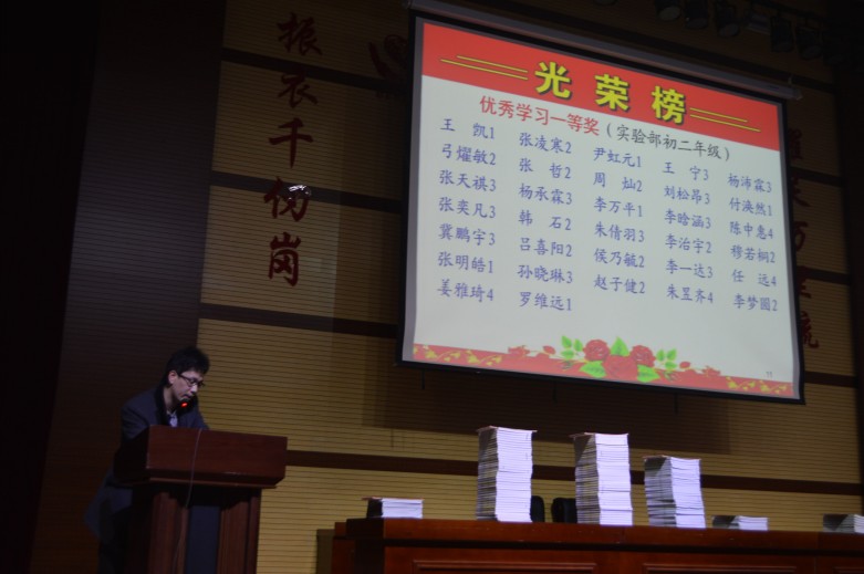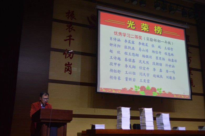 初一年级主任谢林宣读了《优秀学习奖奖励机制》;初一年级副主任胡玉亮和初二年级主任刘敏灵分别宣读了初一初二年级的“优秀学习奖获奖名单”。
