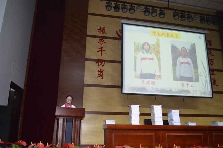 1604班的吕沫凝同学代表初一年级发言,1501班的黄千云同学代表初二年级发言。她们共同强调了“制定明确目标,提高听课效率,保障作业质量”对取得优异成绩的重要性。