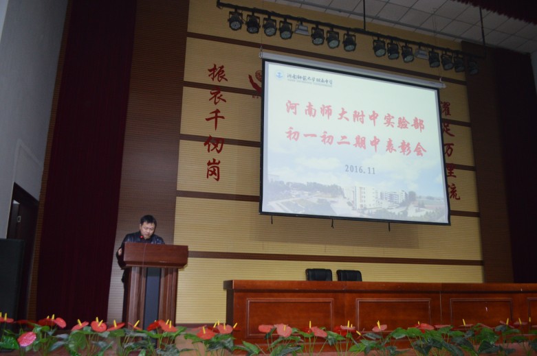 11月14日下午,实验部初一初二年级期中考试表彰大会在道德讲堂报告厅成功举行。实验部副主任赵东亚,初一初二年级全体师生600余人共同参加了表彰大会,表彰会由陈文甫老师主持。