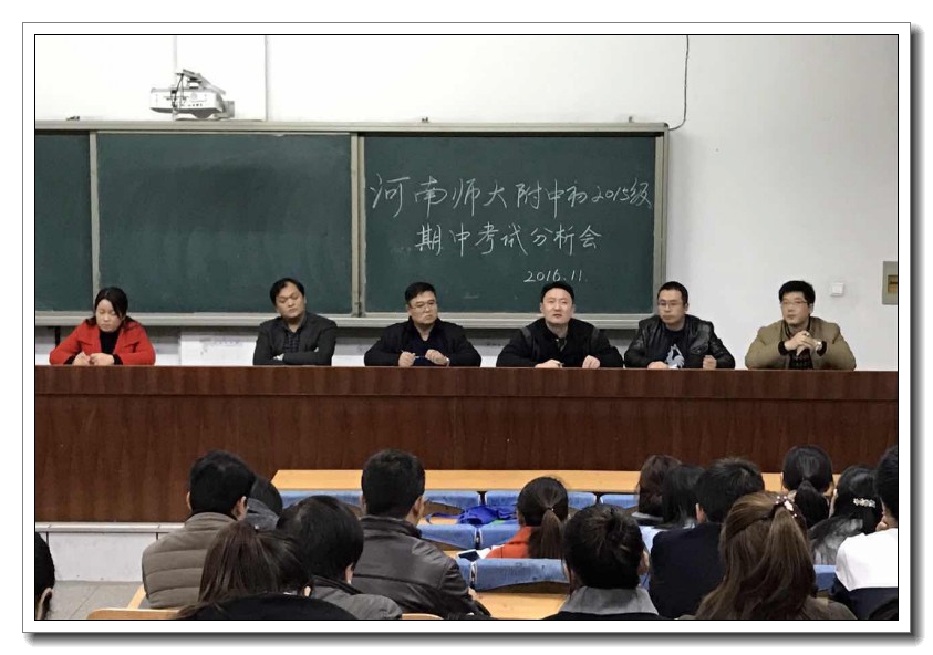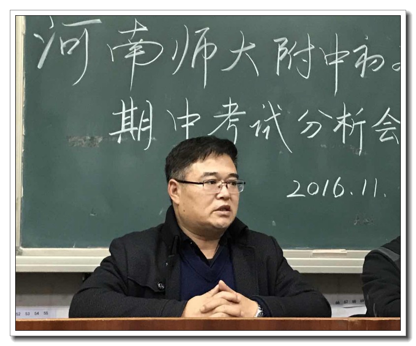 会议伊始,郭主任对期中成绩进行细致分析,对整体成绩进行了充分的肯定,同时也指出与实验部的差距。就成绩取得和班级管理两大方面,分别让初1507班班主任谢高通和初1523班班主任马艳慧两位老师进行分享交流。谢高通老师结合自己班的实际提出下阶段继续坚定不移地从习惯抓起,利用班会进行目标教育、信心鼓励等;马艳慧老师提出在班级管理上采用活动激励、寓教于乐的方法,让学生快乐学习,健康成长的带班理念。