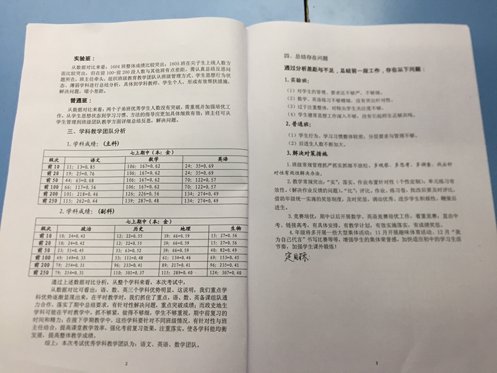 考试的作用一是选拔优秀,二是检测反馈。年级上下做到科科分析、人人反思、经验共享、团结协作,不但找到了班级管理、学习中的实际问题,还极大地加强了初一年级教学团队的凝聚力、向心力和竞争力。