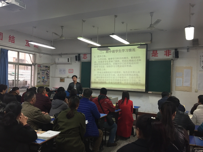 第二阶段,下午3:30到5:30,家长们直接到各班教室,分班级继续进行。由班主任和科任教师针对本次期中考试进行具体分析和指导,并进行了期中考试的表彰,为家长和孩子指明了下一步努力方向。