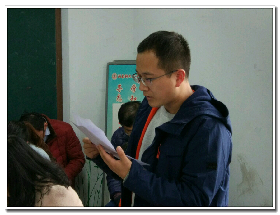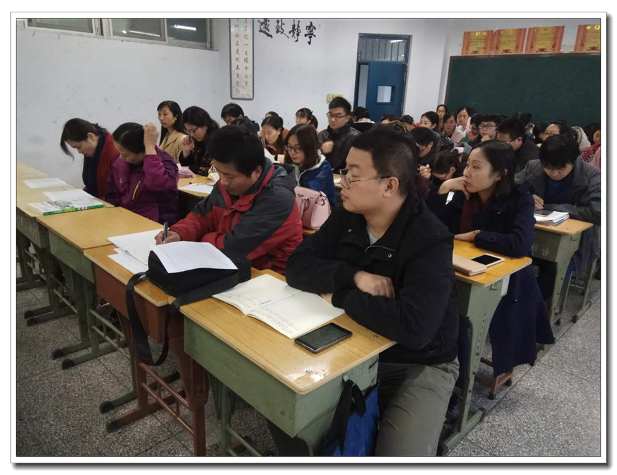首先,从班级管理和学科教学两个方面,四位教师代表依次进行了经验分享和总结发言。初1408班班主任朱剑青和初1416班班主任徐建伟,立足班级管理,着眼班情现状,分析学情考绩,就初三学生当前面对的主要问题,从作业、检测、背诵、书写、心态等方面分享了自己所带班级的一些卓有成效的做法。数学学科张存敬和政治学科范楷两位老师分别作为文科学科代表和理科学科代表对本次考试试卷情况进行了客观评价,总结存在的问题,深入分析原因,并提出了相应对策和改进措施。 然后,薛卫忠主任对期中考试进行了宏观总结和微观分析,对所获得的成绩进行了充分肯定,同时也指出了与实验部的差距,勉励老师们要保持危机感和忧患意识。薛主任从横向和纵向对成绩进行了深入而细致的对比分析,并对成绩凸显的“四楼现象”提出了表扬,激励广大老师鼓足干劲,赶超比拼。针对初三学生学习任务重、备考时间紧、作业完成不及时、学科成绩不平衡、学习方法有待优化等突出问题提出了一系列的解决方案,比如对待作业完成不及时的问题,老师就要把晚自习时间交给学生,培养学生的独立思考、主动自学能力,老师应该少讲甚至不讲,以保证学生的自由学习时间。同时,他对常规教学提出两条建议:一是学会反思,在反思中成长;二是学会研讨,在研讨中进步。
