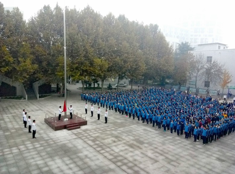 7︰00,在雄壮的军乐声中,护旗手手擎五星红旗,迈着矫健的步伐,向中心广场的旗台走去。伴随铿锵有力的《义勇军进行曲》,鲜艳的国旗冉冉升起,全体师生行注目礼,表达心中的激动、神圣之情。