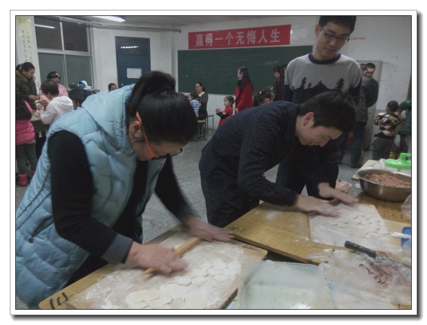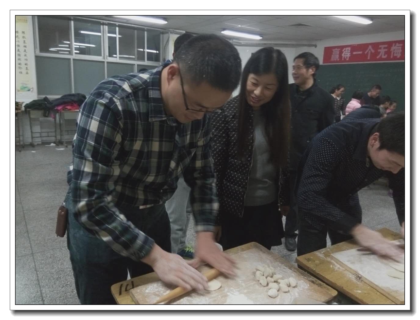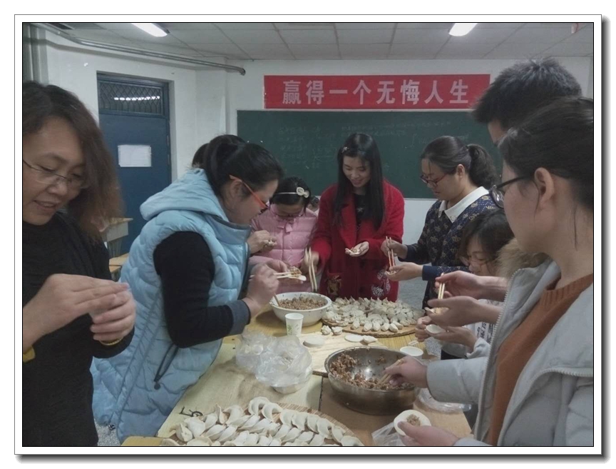 今年冬至,高中部全体高三老师始终坚守在一线,放弃与家人团圆的机会,坚持为正在紧张备考的高三学生上课。高三年级忙里偷闲,倾心为老师们筹办了此次“冬至节包饺子活动”。 下午三点,年级三位负责采购食材的老师就早早把食材搬到五楼东教室,随着其他老师陆陆续续到来,准备工作逐步开展,老师们各司其职,有的负责调饺子馅,有的负责擀饺子皮,部分女老师负责包饺子,一派忙忙碌碌、欢乐祥和的气氛。期间有擀饺子皮比赛、包饺子花样传授课,大家都说说笑笑,其乐融融。 “冬至节包饺子”活动,体现高三年级全体老师和谐、团结、奋进的精神面貌,加深了老师们之间的交流,缓解了高三老师们沉重的工作压力。取得良好效果。