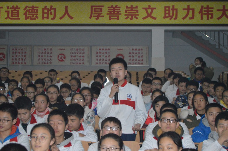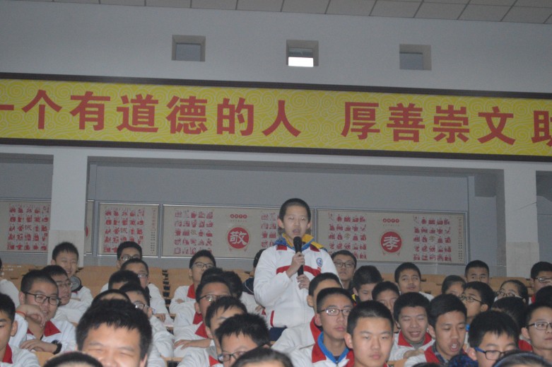 12月19日下午,由实验部初二年级承办的主题为“安全法制记心中,健康快乐伴我行”的我校第三十二期道德讲堂活动在逸夫科技馆道德讲堂报告厅开讲。副校长赵振华,团委副书记周晋阳莅临活动现场,实验部初二年级全体师生共同参加了本期道德讲堂活动,活动由陈文甫老师主持。