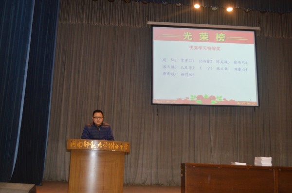 最后,汪才安主任用三句话来为本次表彰会做总结发言:客观对待成绩,清醒认识不足;胸中有梦,见贤思齐;花开四季、芳香各异。汪主任的讲话不仅对获奖的学生予以了表扬和肯定,同时对未获奖的同学予以了鼓励和赞赏,获得了在场老师和学生的热烈掌声。