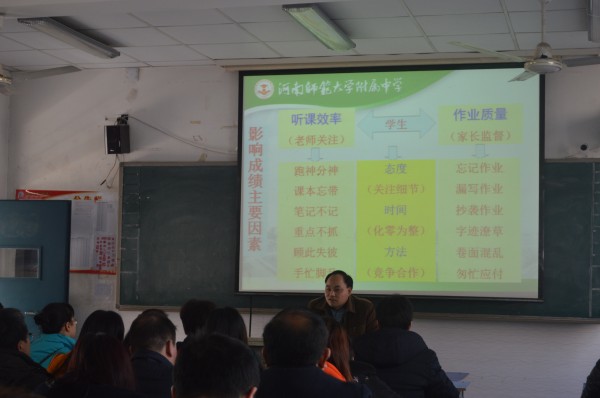 2月18日下午,在年级的统一安排和部署下,各班的家长会顺利召开。本次家长会共有四项内容:期末考试成绩总结、家校沟通解决对策、家访工作具体要求、直升班级政策解读。同时,各班主任还根据自己班级的实际情况,从作业完成的监督、电子产品的使用、叛逆心理的应对、体育训练的引导等方面给家长们提供了具体的指导建议。