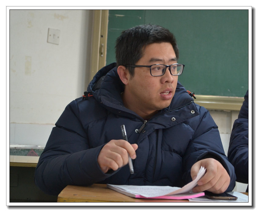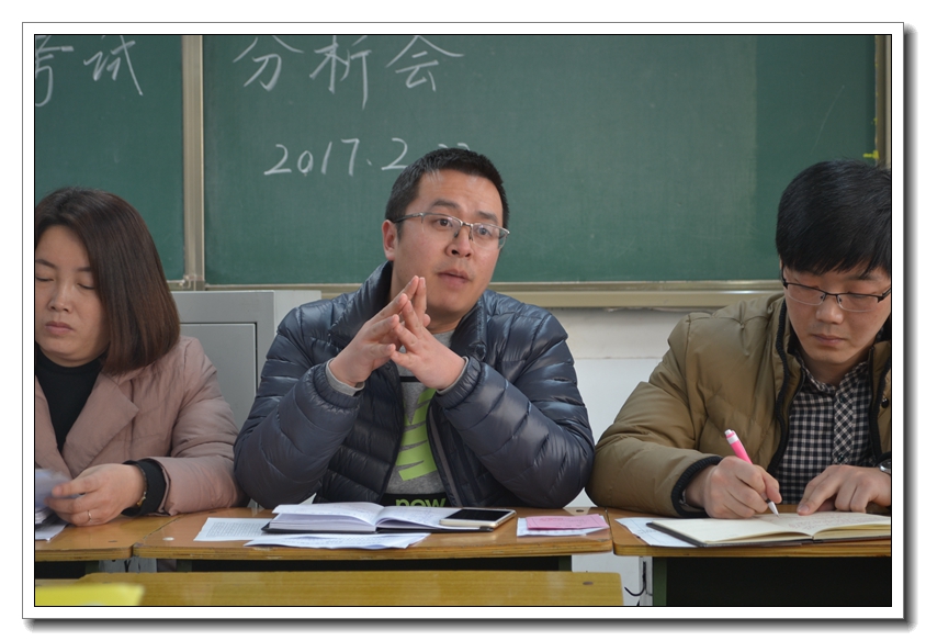 首先,郭学明主任分别从横向、纵向两方面对期末考试成绩进行了详细分析,针对加强尖子生培养和后进生的关注提出了五个要求:1.加强班级教学团队建设;2.建立各班优秀学生档案和有望生档案;3.加强学生座谈与谈话;4.建立班级内优秀小组的比拼机制;5.以研究者的心态来解决工作中的问题。