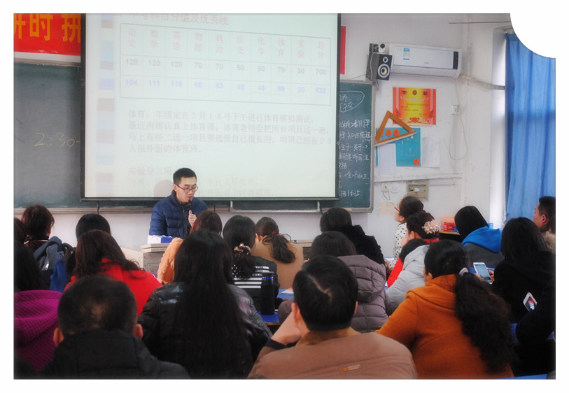 在月考分析会的第二天下午四点,各班又召开了中考动员家长会,为家长们讲解了中考网上报名的操作流程,并针对体育加试和实验加试的具体事宜进行了细致地讲解,也顺势对我集团校的国际部、双语国际、实验学校的招生优惠政策进行了宣传,廓清了家长们心中的困惑,也为接下来的相关工作打下了坚实的基础。