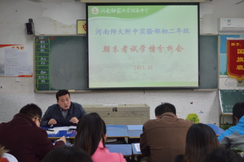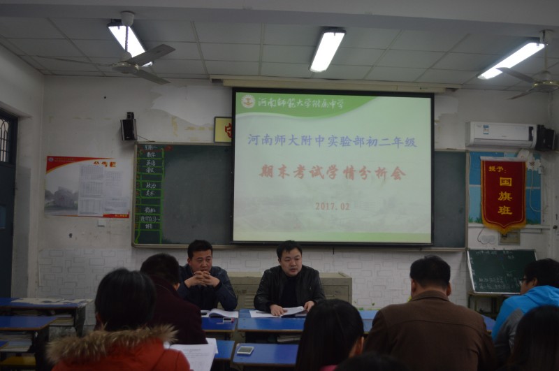 2月28日下午,实验部初二年级在树人楼二楼初1502班召开期末考试学情分析总结会。实验部副主任赵东亚莅临会场和初二年级全体老师共同参加了本次分析总结会。总结会由陈文甫老师主持。
