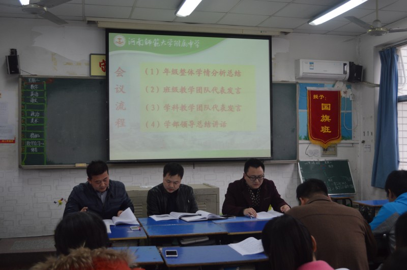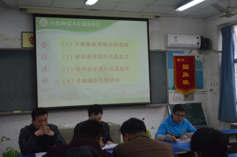 陈文甫老师从年级整体成绩、班级教学团队和学科教学团队三个方面对上学期期末考试进行了分析总结,并针对存在的问题提出了解决对策:目标意识需要引导强化,常规管理需要精细落实,德育工作需要不断深入,教学团队需要精诚合作,家校合作需要信息互通。