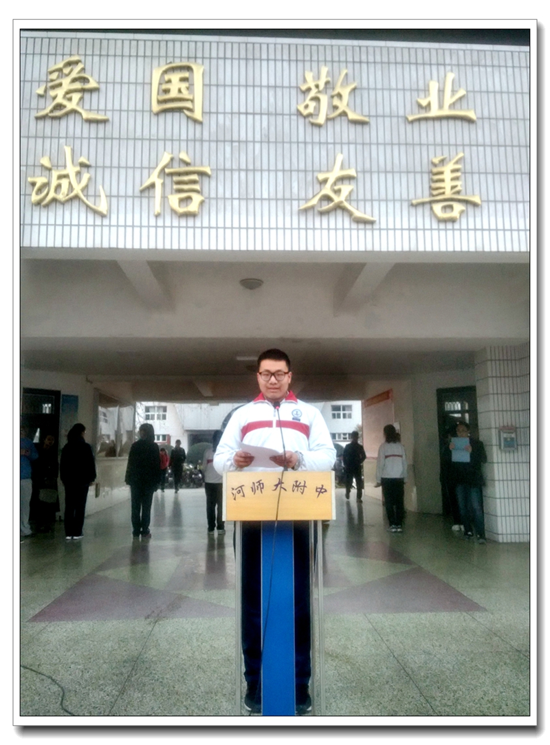 仪式之后,高1506班徐达鹏发表了“既要仰望星空,更要脚踏实地”的主题演讲。徐达鹏同学强调作为新时代的中学生必须志存高远,只有拥有了远大目标,才有奋勇向前的动力。然,九层之台,起于垒土,要想取得成功还必须要脚踏实地。最后,他祝愿全体同学们在即将到来的考试中取得理想成绩。