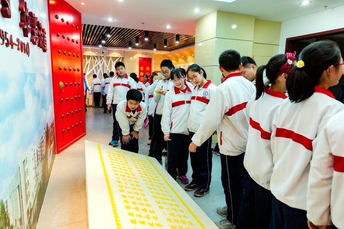 一个多小时的参观活动中,班主任带领学生秩序井然,伴着一张张老照片走近附中的前世今生。在校史展里,一张张图片、一件件实物,生动而全面地再现了附中经历六十三载的沧桑风雨路,使学生了解了附中的发展历史,感受到了具有丰富内涵的附中精神。