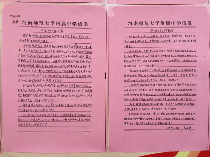 结束后,年级统一组织了参观校史馆心得体会的征文比赛,并各班进行评比,字里行间透漏着无不为学校厚重、光辉的历史而骄傲;无不为展馆中珍贵的史料、文物而折服;无不为图片中展现的鲜活、尘封的岁月而感慨、激动;无不为学校诞生以来取得的巨大成就而欣喜、自豪。