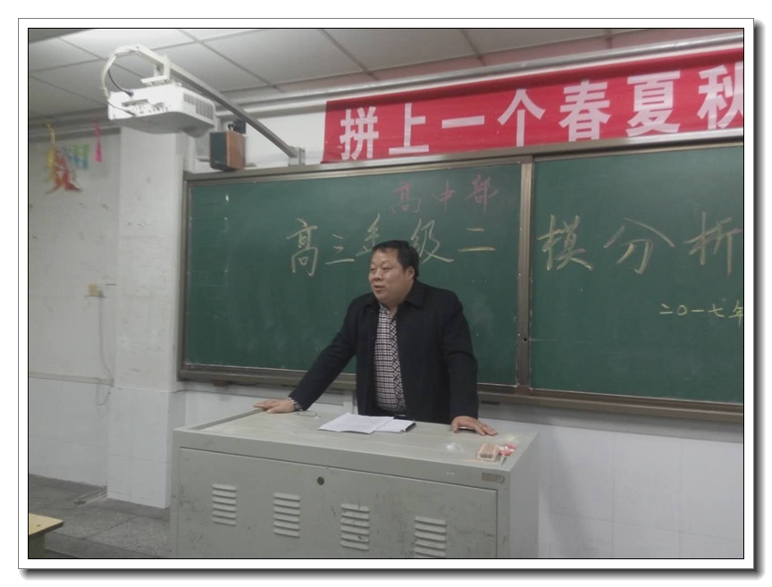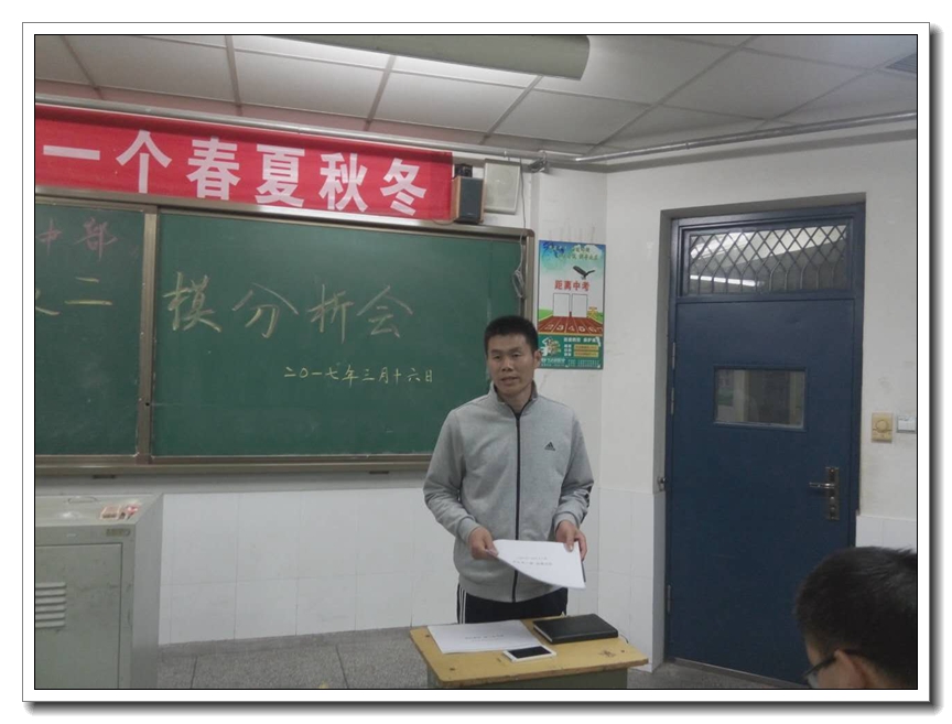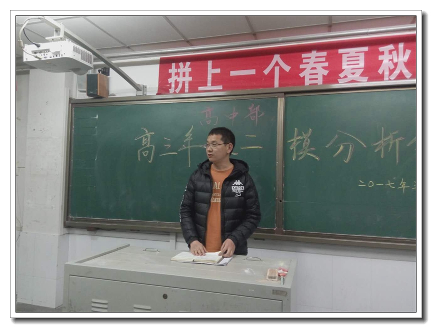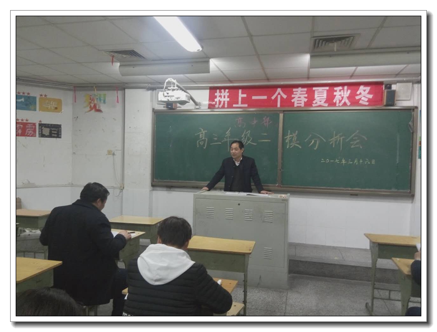 3月16号晚上二号楼五楼西教室,高中部高三年级二模分析会隆重举行,副校长王继民,学部主任侯伟,副主任张自发、刘毅,高中部全体教师共同参加。