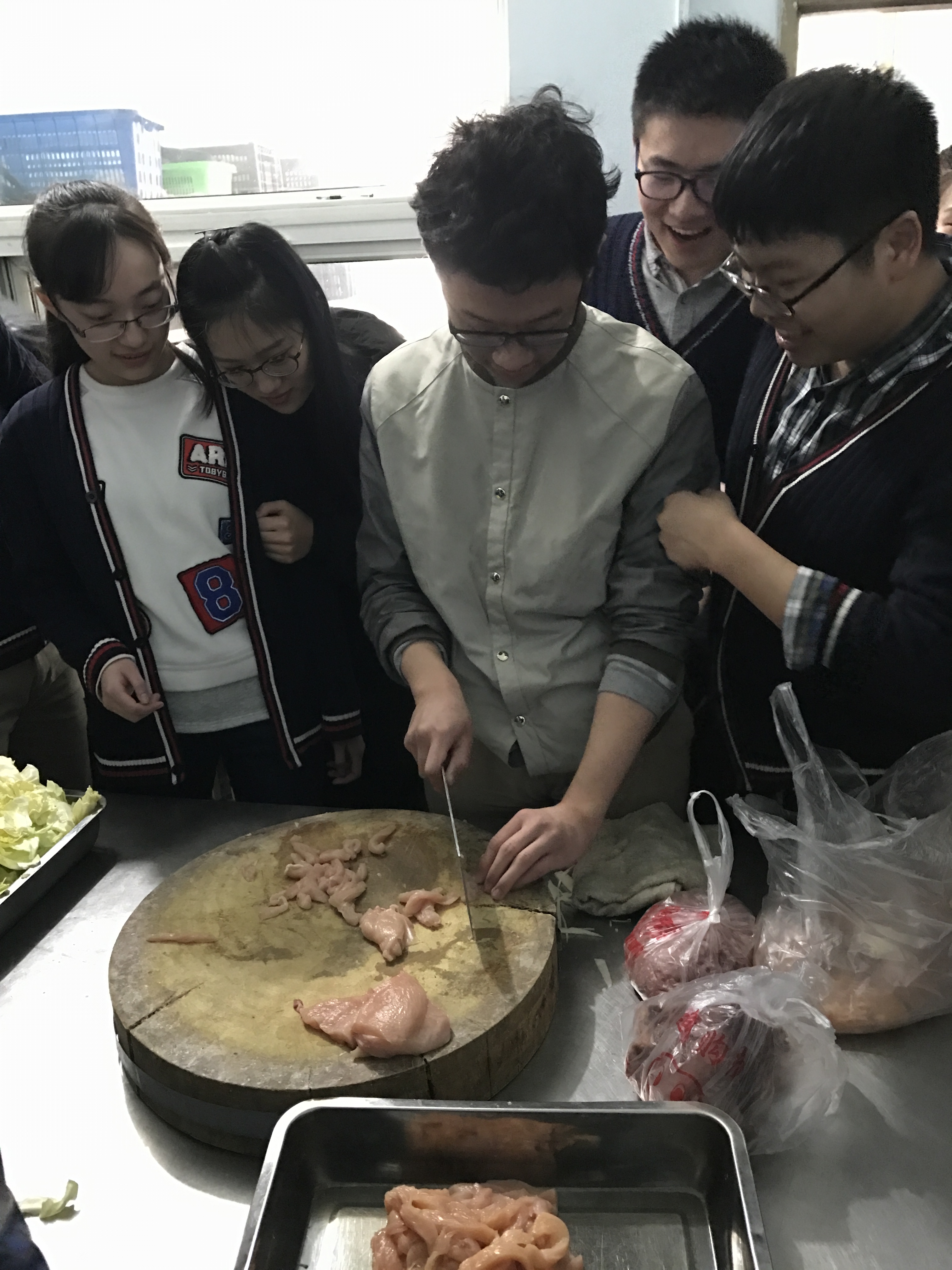 在普高高三学子努力备战高考之际,高三欧美学生已经陆陆续续拿到了英、美、加、澳等国多所名牌大学的录取通知书。学生们毕业在即,为提升学生的国外独立生活能力,在我校宿膳中心的大力支持下,国际部于2017年3月18日下午组织学生在学校西校区餐厅举办了“撸起袖子下厨房 家乡厨艺学身上”活动。