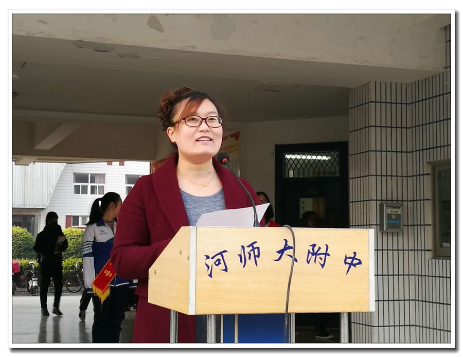 在主题升旗仪式上,王慧慧老师作了题为《脚踏实地,实现自我》的国旗下演讲。在迎接中考的最后89天,她鼓励同学们要目标坚定,脚踏实地,刻苦钻研,惜时如金,为实现理想而努力奋斗。