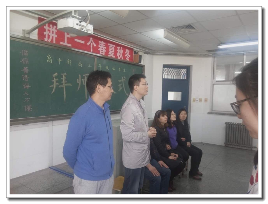 4月8号高中部高三年级在二号楼五楼举办隆重的拜师仪式,在距高考60天的紧张时刻,通过师生结对,导师制培养,使临界生的成绩更上一层楼。高三年级“蓝青双辉” 工程正在积极推行。