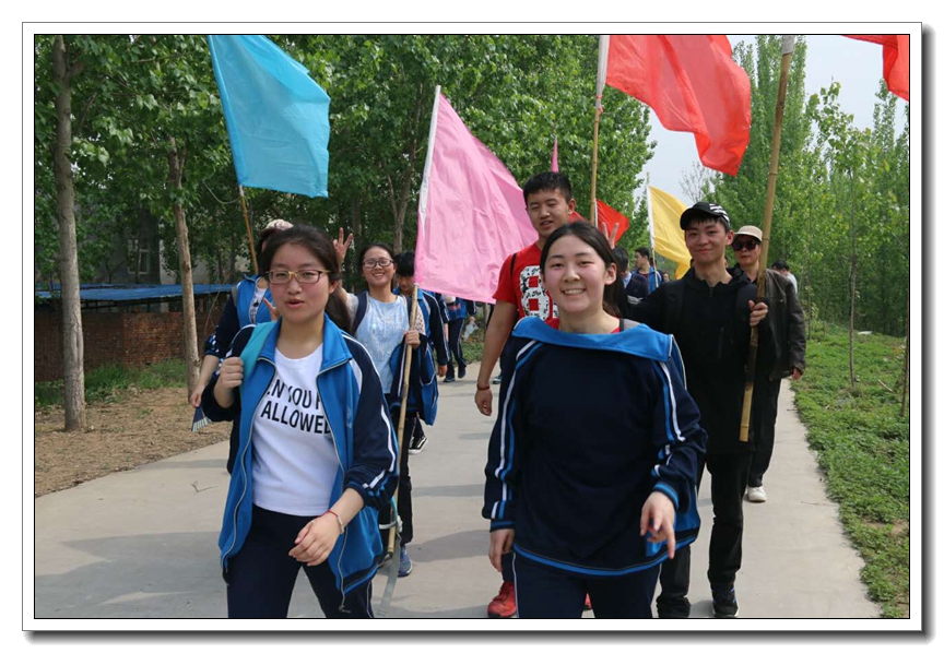 4月15日下午,阳光明媚,春暖花开,在这充满春天的气息中,河师大附中高中部高三年级举行了“亲近自然,释放自我——高三学子励志远足拉练活动”。下午1时30分,高三学子集中在校园操场上,高举着校旗和各色旗帜,精神抖擞地排着整齐的队伍,脸上荡漾着欢快的笑容,随时准备出发。随着副校长王继民“远足拉练活动正式开始!”出征口令的发出,朝气蓬勃的学子踏着欢快的步伐迈上了青春励志拉练的征程。