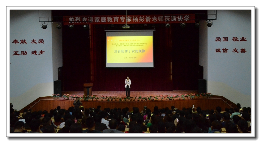 学生成长,离不开家校合作;学校教育,更离不开家长参与。4月18日晚,金龙初中部初二年级诚邀家庭教育专家杨彭嵛老师在我校道德讲堂做题为《培育优秀子女的规律》的精彩报告。民盟新乡市委专职副主委高弘,河南师大附中常务副校长刘齐晋,初中教育教学部副主任周晋阳、张凤霞,初二年级全体级班主任和家长代表出席本次活动。