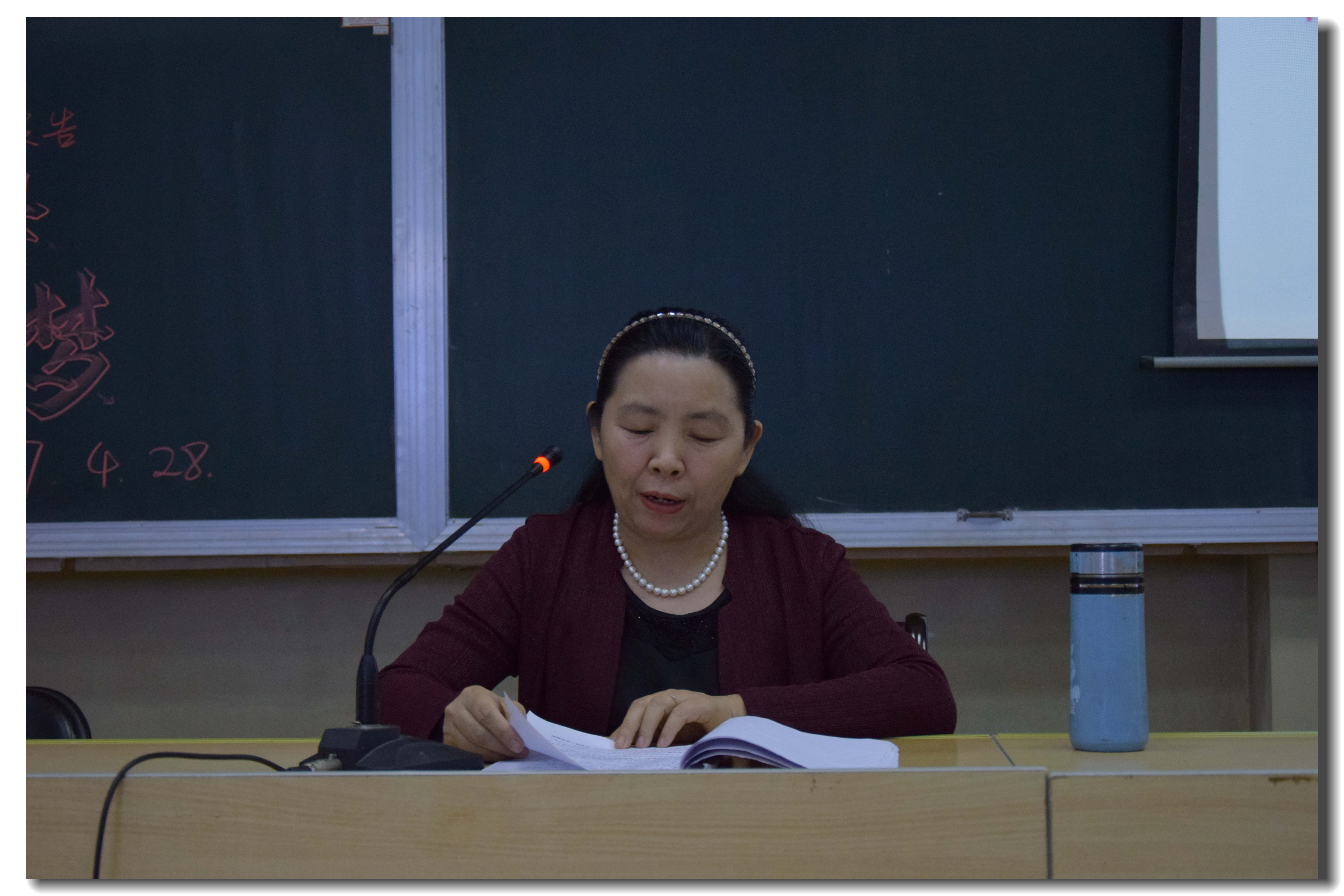 她在开场之前通过分享外甥女及其4岁的女儿朗诵的小诗《绿叶》让家长明白了家庭文化对学生成长的重要性。由此她阐明了本次家庭教育主题的内涵:“用心”,指的是要动脑筋、讲究方法和策略;“共筑”是指要和孩子形成合力;“七彩梦”是指对孩子综合素质、良好习惯、独立选择能力以及优质家庭文化、理想幸福指数的美好追求。
