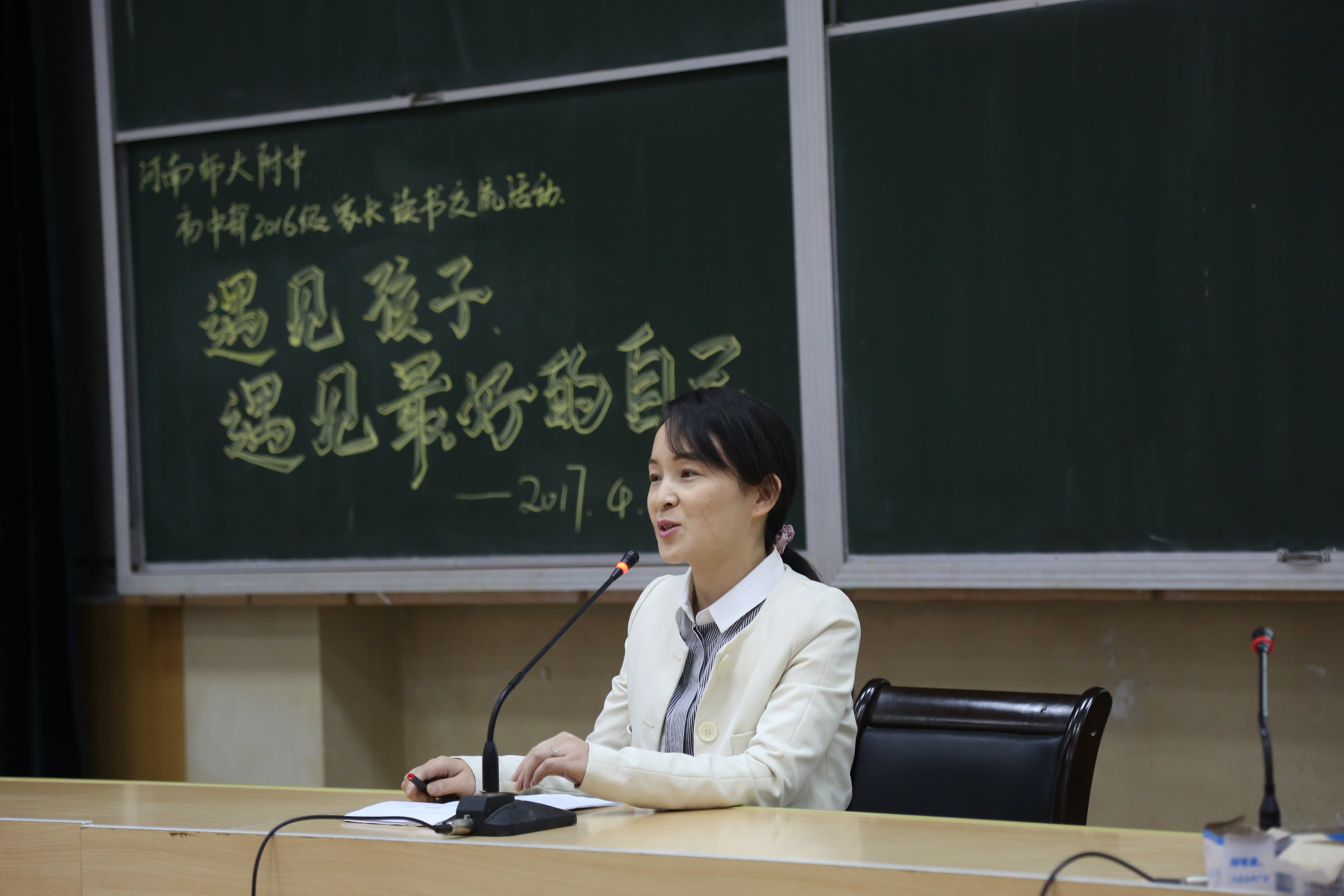 4月27日晚,办公楼四楼会议室高朋满座。初中部初一年级以“遇见孩子,遇见更好的自己”为主题的家长读书交流活动在这里举办。参与本次交流活动的是初1619、1620的家长们。初中教育教学部副主任张凤霞、初一年级主任武泉红、初一年级教师、初一年级各班家长代表参加了本次活动。活动由“中原名师”周枫琳老师主持。