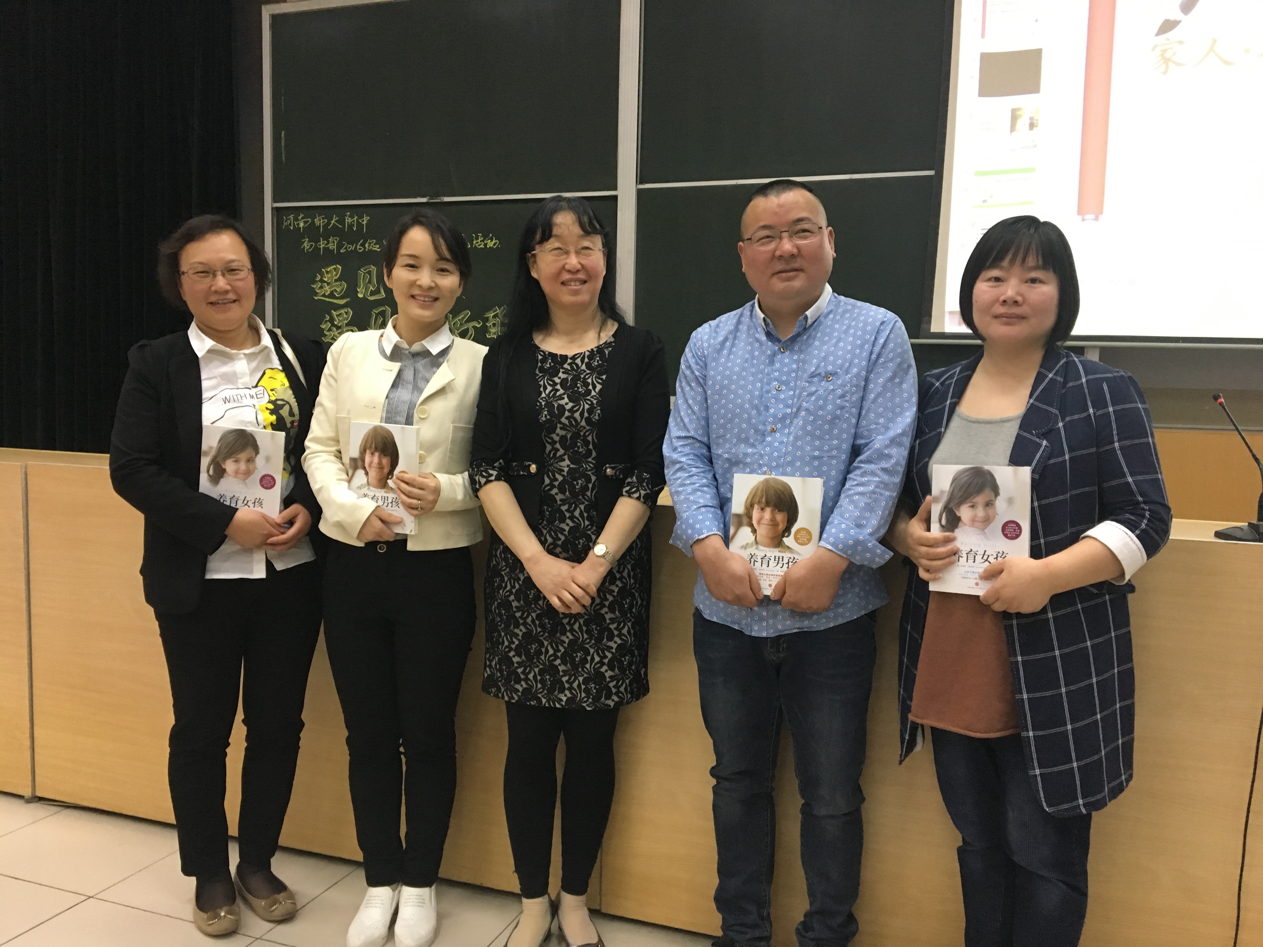 周老师以一组数字结束了今天的读书交流。并推荐并赠与了下期读书交流活动书籍《养育男孩》、《养育女孩》。