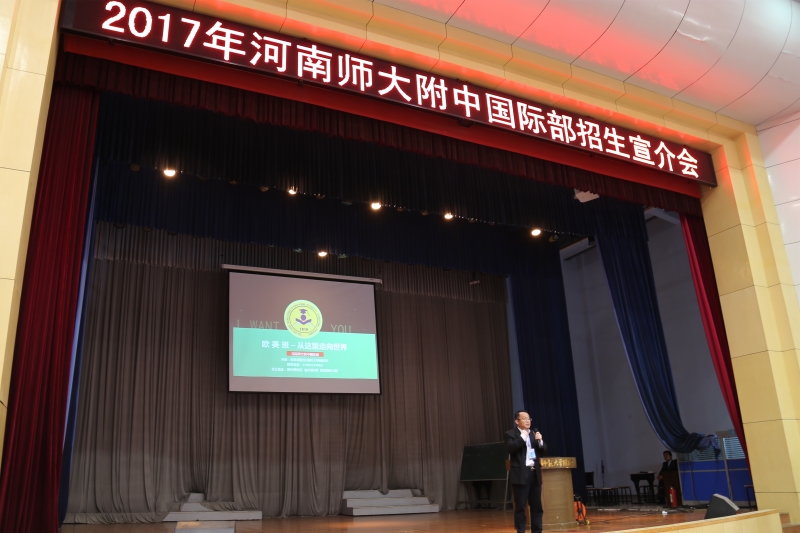 5月7日上午,河南师大附中国际部招生宣介会在附中西校区大礼堂成功召开。来自我市多个兄弟学校的数百名初三应届毕业生家长齐聚一堂,聆听了2017年我校国际部的招生政策和留学专家的精彩报告。