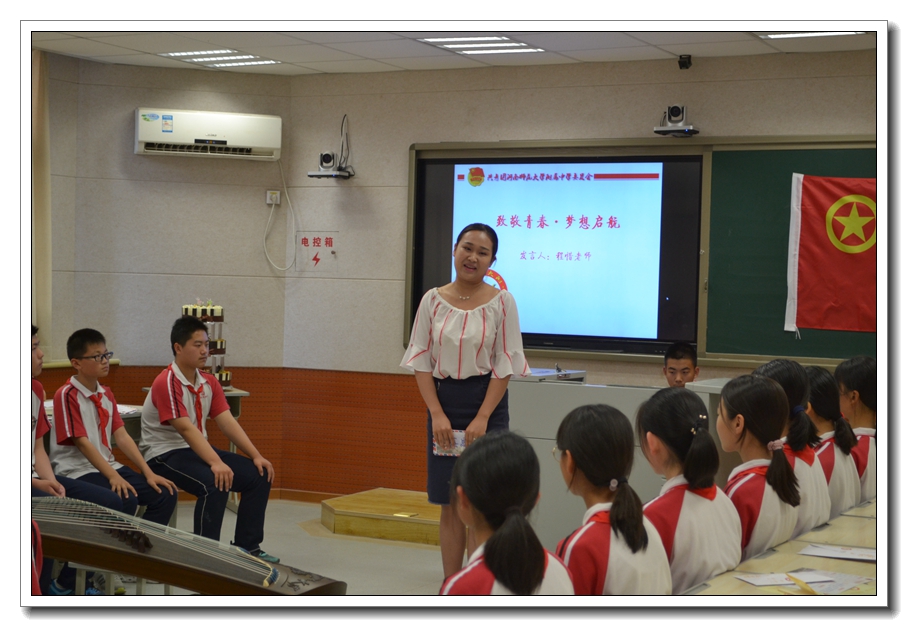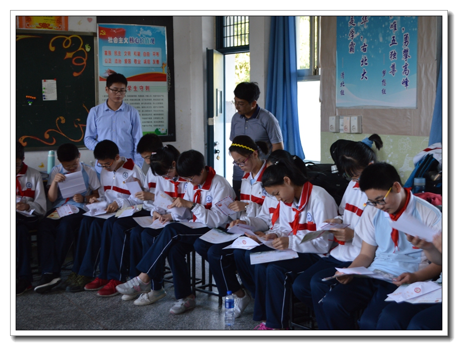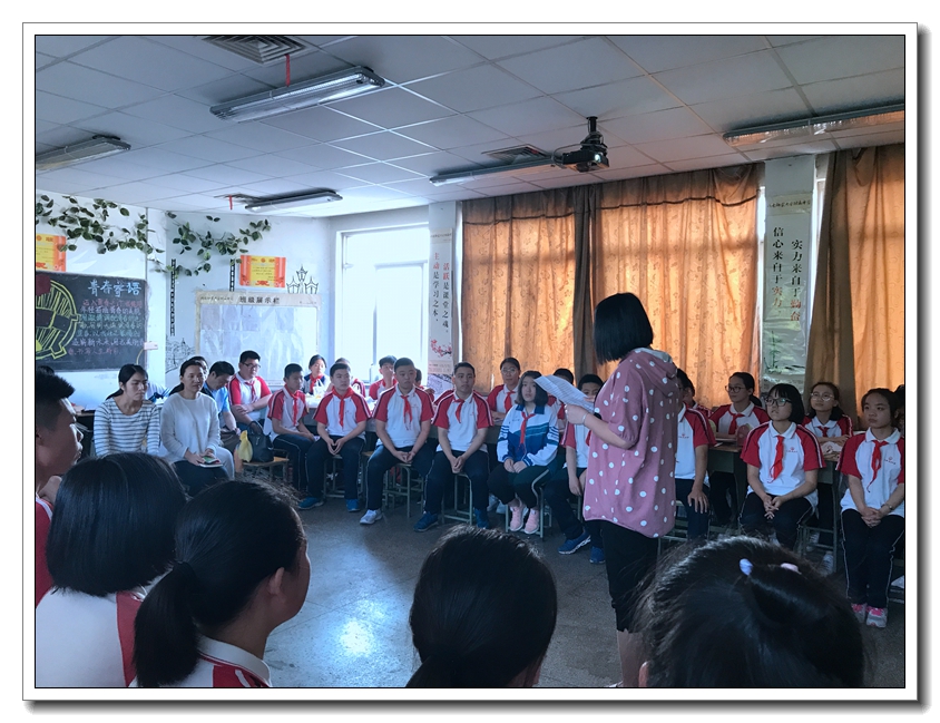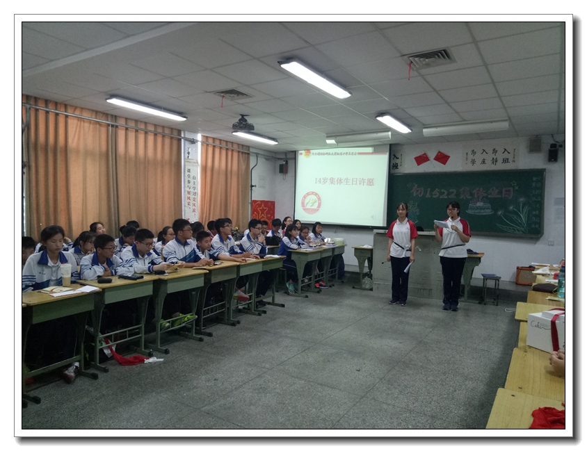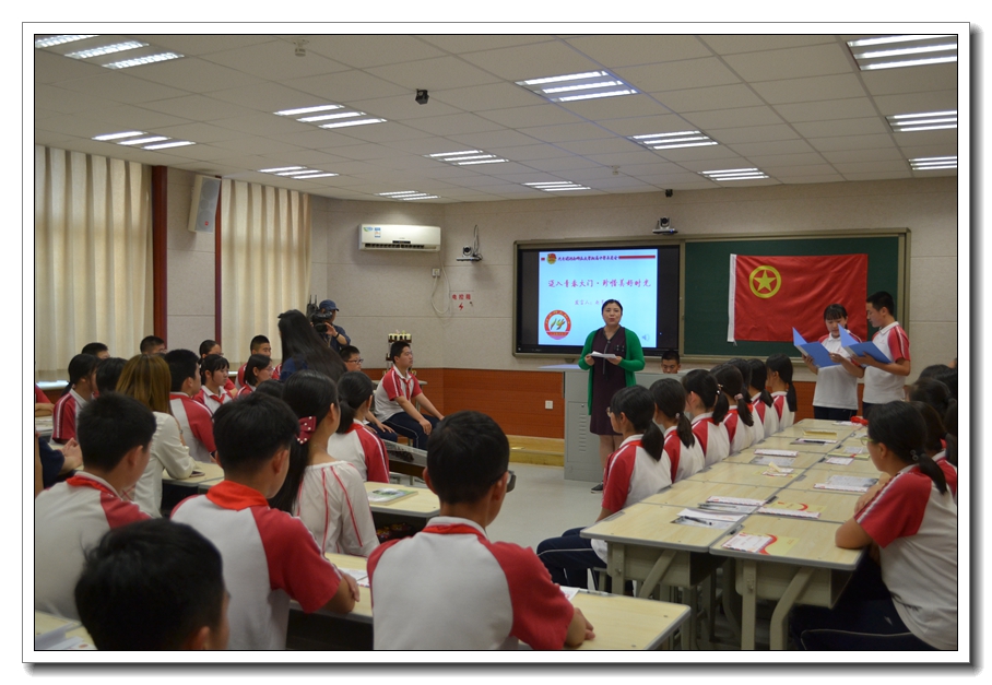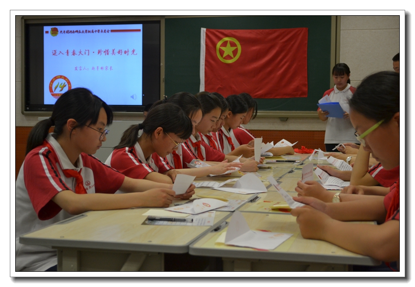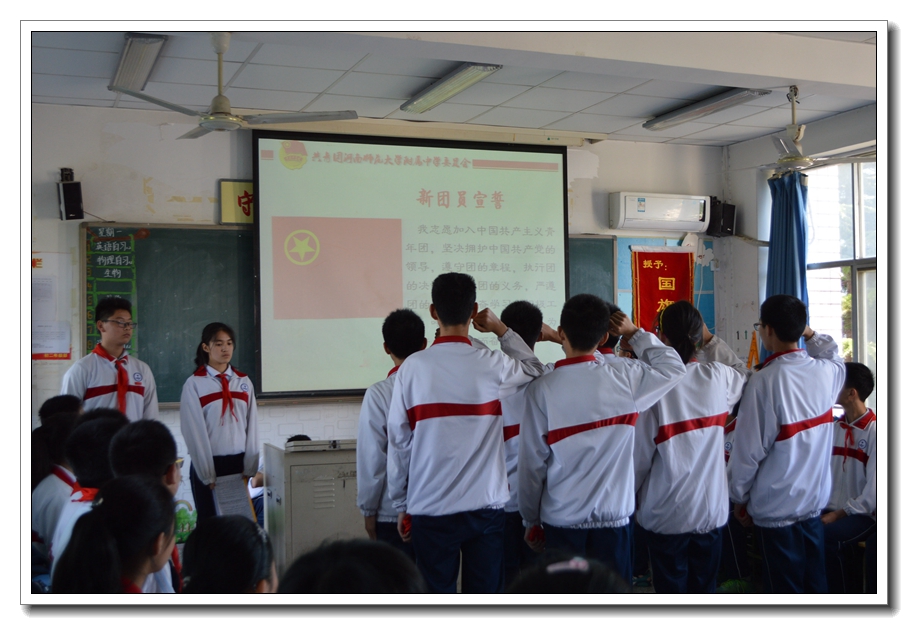 为深入贯彻落实共青团中央《关于在全团集中开展“学习总书记讲话 做合格共青团员”教育实践的通知》的精神和要求,积极开展“与人生对话——我的中国梦”主题教育实践活动,响应我校关于进一步贯彻家校共育相关精神,根据我校团委统一部署,5月15日下午,实验部初二年级、初中部初二年级举办了“14岁集体生日暨新团员退队入团仪式”主题团日活动。该活动受到新乡市教育局和学校领导的高度重视,同时也受到新乡市电视台的热切关注。新乡市教育局综合实践课教研员马文晓、我校常务副校长刘齐晋深入年级观摩指导,校团委、实验部、初中部、现代教育技术中心等部门中层领导陪同观摩。