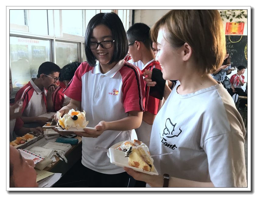 送上蛋糕,新老团员代表全班许愿、吹蜡烛。