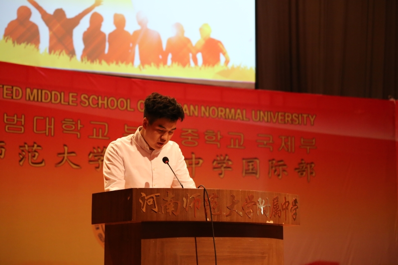 掌声再次响起,是送给作为学生代表发言的中韩班张元康同学,中英韩三种语言的由衷问候与致谢,对一千天百味生活的浓情回忆与感悟,细细戳点同学泪点,激起了在座同学和家长内心的阵阵涟漪。
