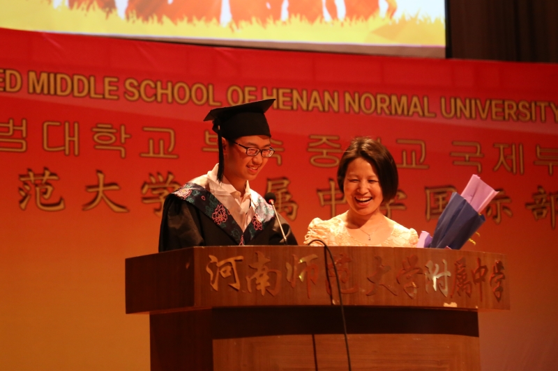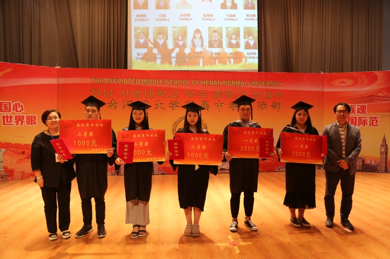 早已把目光投向海外的毕业生已经各入名校并拿到了各级奖学金,国际部特邀嘉宾:中育集团副总裁:常青女士、国家留学基金委韩国部副主任:元钟翊先生和欧美项目、小语种项目领导张素文女士、张海彬先生也为优秀学子颁发了证书和奖品,送上了温暖的鼓励和祝福;高二年级的学弟学妹则拨动琴弦,献上一曲《匆匆那年》,与学长共同回忆了即将封存的青葱记忆……