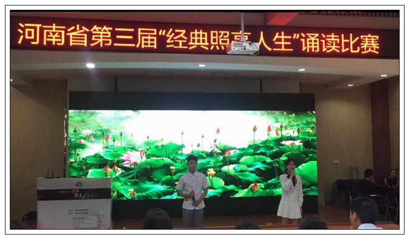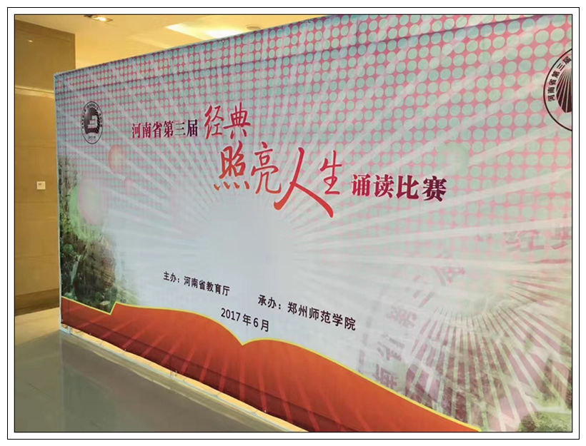 为深入学习贯彻党的十八大和十八届三中、四中、五中、六中全会精神以及习近平总书记系列重要讲话精神,落实中共中央办公厅、国务院办公厅《关于实施中华优秀传统文化传承发展工程的意见》,积极倡导社会主义核心价值观,传承和弘扬中华民族优秀传统文化,增强民族自豪感和文化自信心,2017年6月16日至17日由河南省教育厅主办的第三届“经典照亮人生”诵读比赛在郑州师范学院东校区举行。我校师生积极参与,认真准备,在比赛中获得优异成绩。