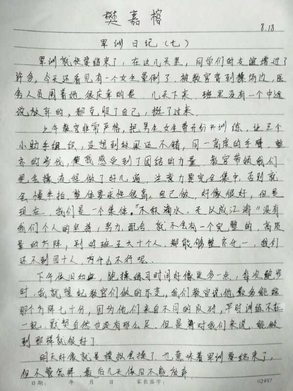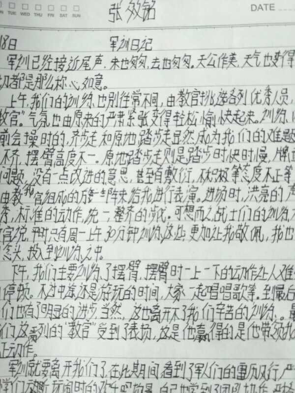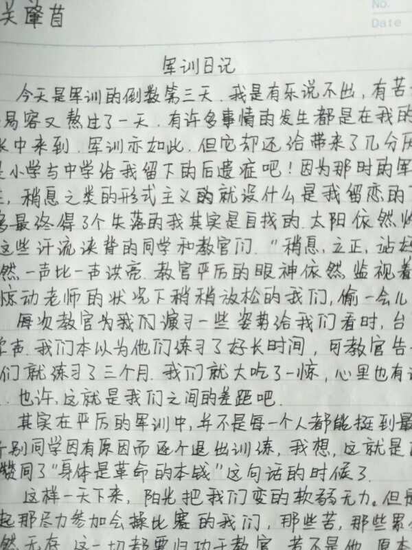军训多日以来,科目越来越多,强度越来越大,而我们可爱的同学和教官的训练热情也越来越高。就像同学们在军训日记里所说:“疲劳在肩头隐隐告诉我:少份娇气,多份坚强;少份依赖,多份自强;少份怨天尤人,多份勇往直前!”