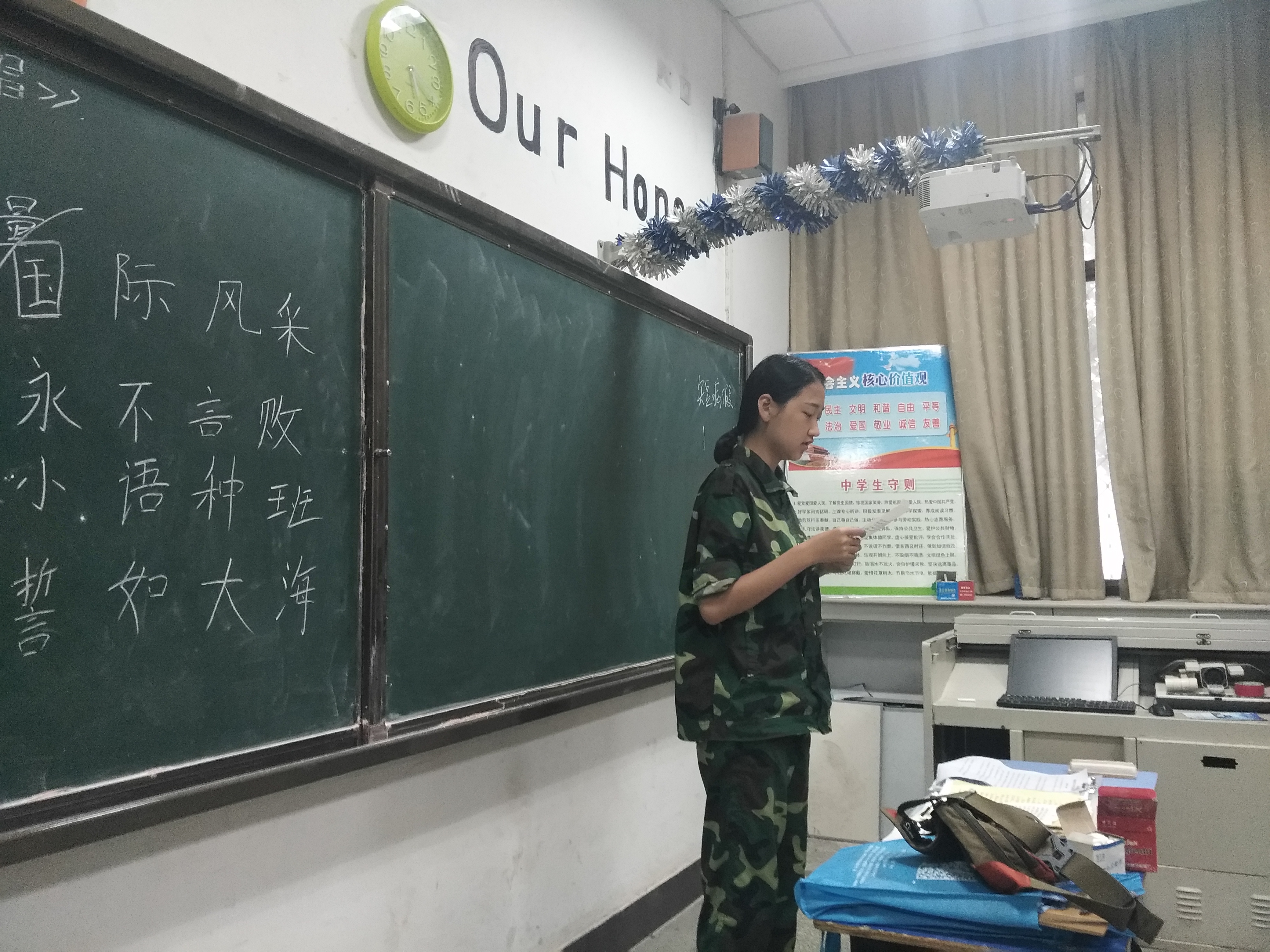 训练过程中,有汇演比武,有拉歌游戏,时而紧张,吼声阵阵;时而活泼,笑语连连。几天下来,皮肤晒黑了,嗓子喊哑了,但同学们不怕苦累,为了提升自己而克服了困难,为了集体而磨炼着自己!来看看孩子们的精彩表现吧!