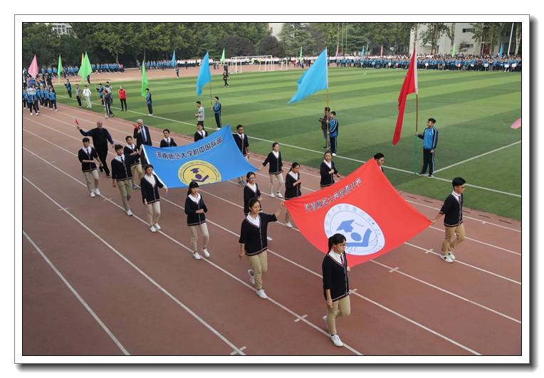 金秋十月,久雨初霁,天高气爽彩旗飘,运动健儿逞英豪。色彩明艳的田径场上彩旗招展,气氛热烈。河南师大附中2017年第九届体育节暨高中生运动会正式拉开帷幕。