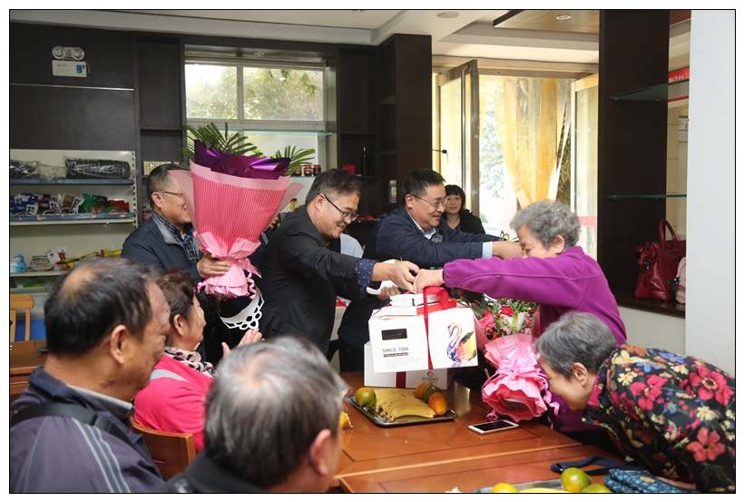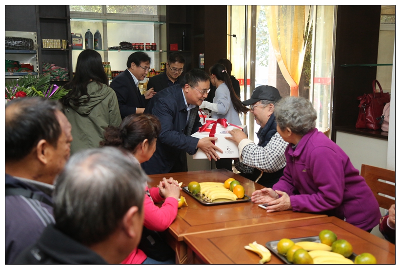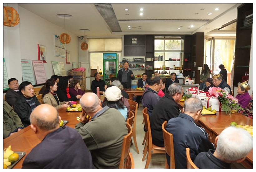 与会的老同志分享果品、合影留念,氛围轻松和谐,其乐融融。会后,学校给老同志赠送了节日慰问品。