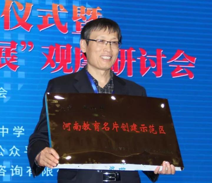 郸城县教体局领取“河南教育名片创建示范区”奖牌