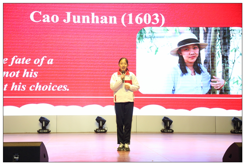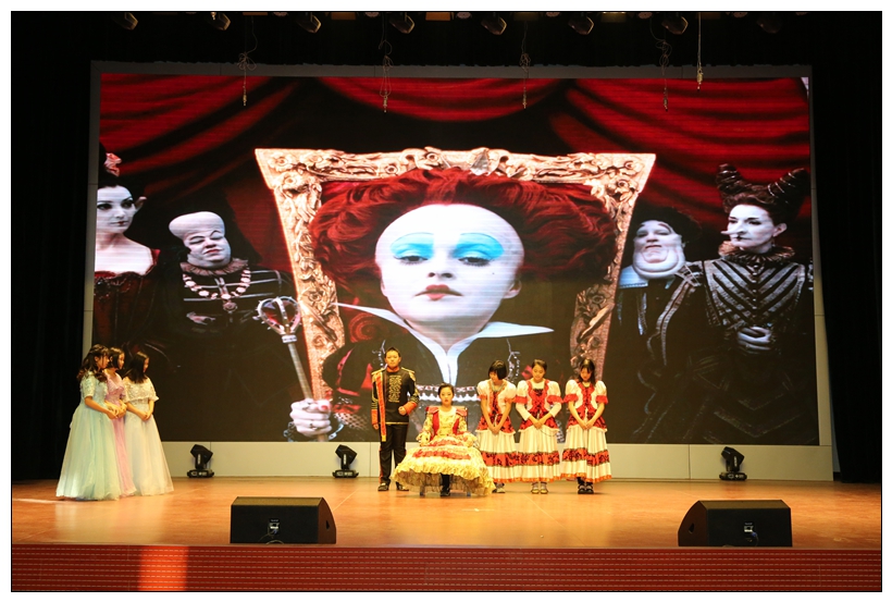 在激烈的演讲比赛中,期间的优秀节目的展演也为整场比赛增添了不少色彩。来自初1601和1602班的同学带来的英语话剧表演——《爱丽斯漫游仙境》营造出魔幻世界的氛围,赢得在场观众阵阵掌声。英语歌曲串场节目Counting Stars、Everybody、Here with you和Big big world深深地感染了在场师生。歌曲大合唱把全场氛围推向高潮。